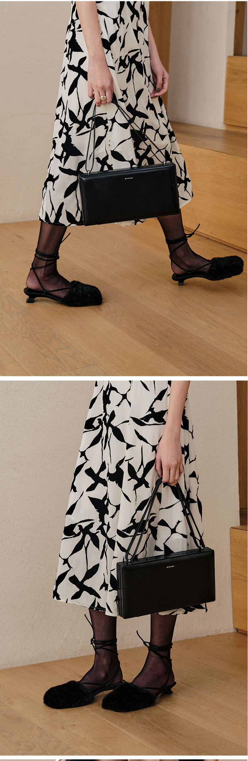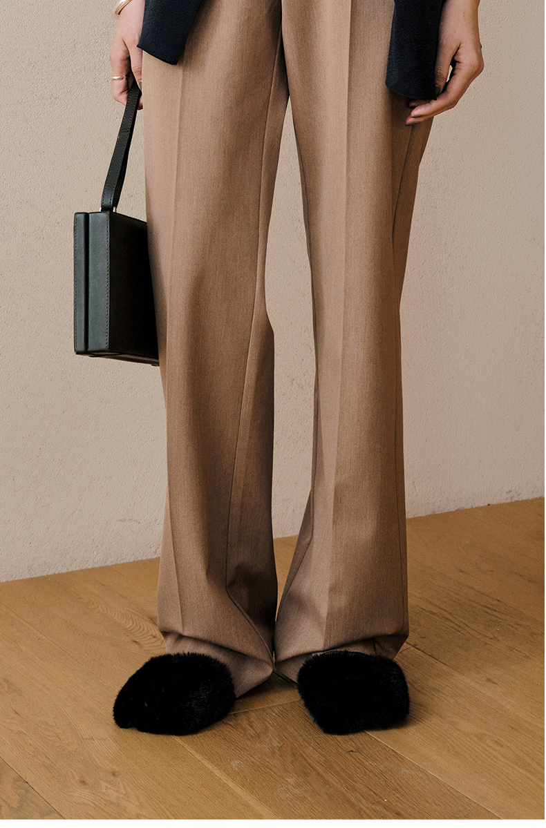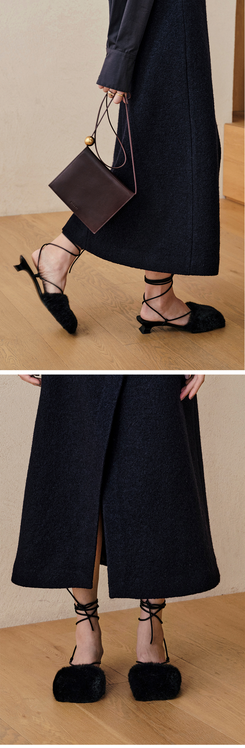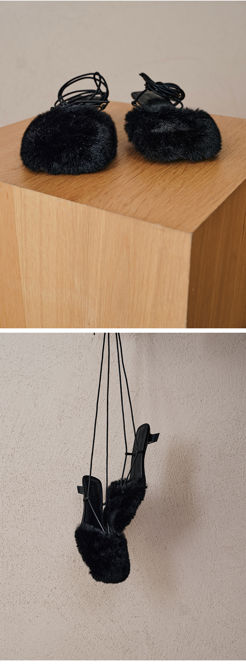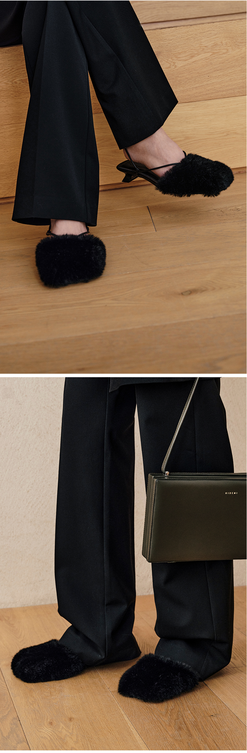 HIDEMI限定款毛毛方头小跟系带鞋