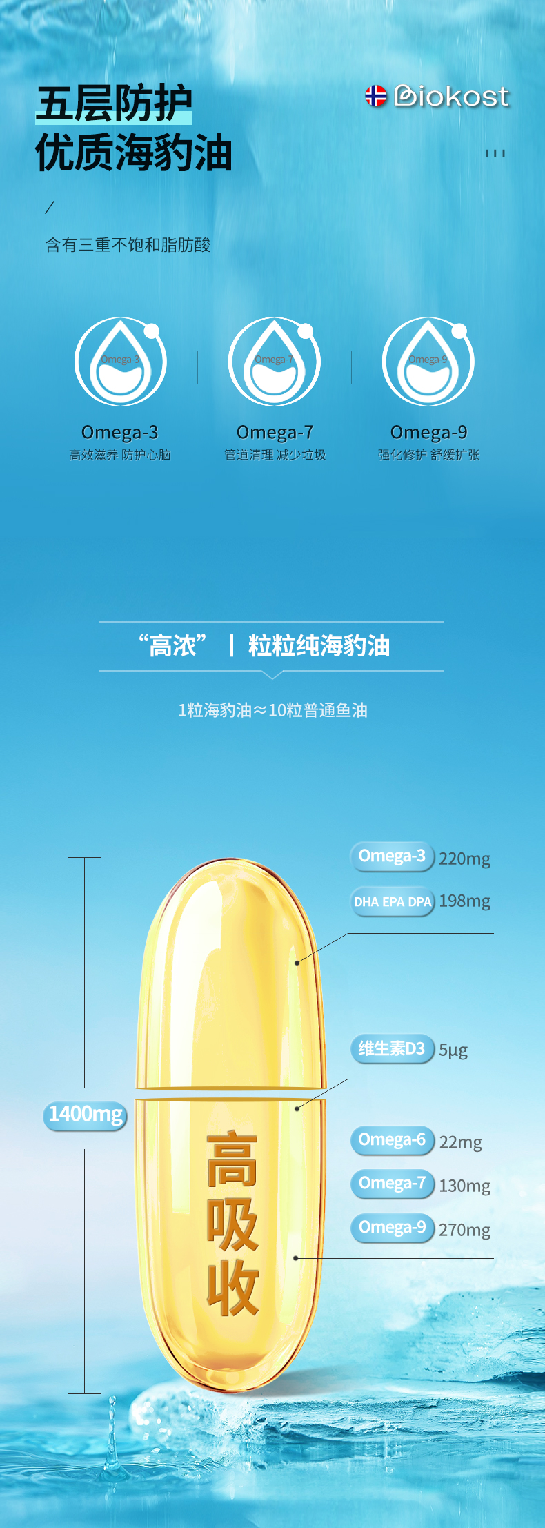 【跨境】【挪威本土版】Biokost挪威进口海豹油成人心脑血管维生素鱼油升级版90粒/瓶