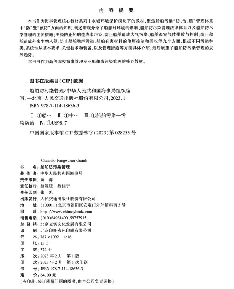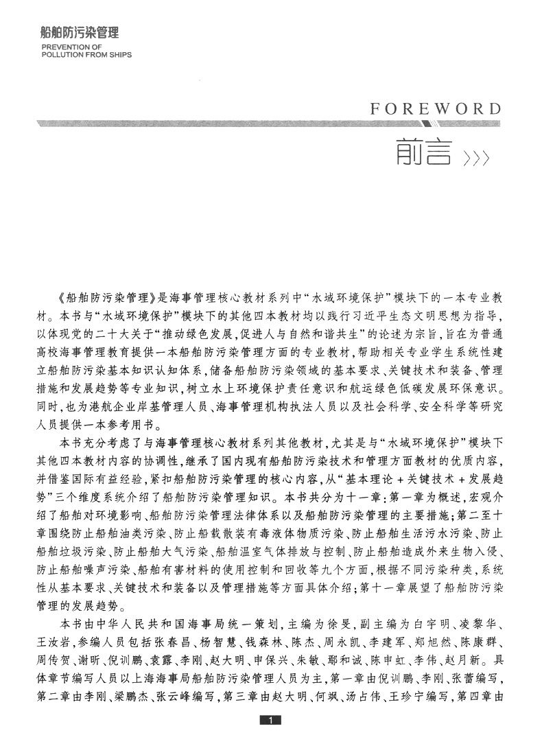 船舶防污染管理 海事管理核心教材 中华人民共和国海事局编