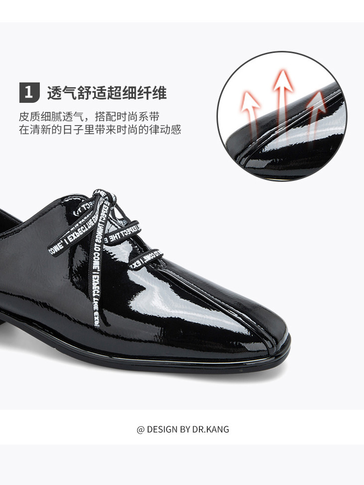 康博士【真皮内里】2020春季新款漆皮粗跟系带小皮鞋休闲方头单鞋女