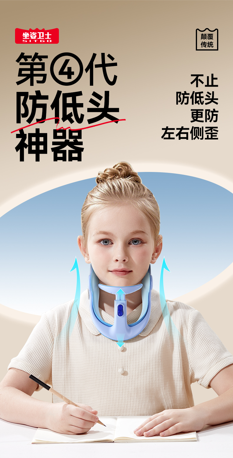 开学福利!【 第4代防低头神器】猫太子坐姿矫正器儿童颈托颈椎护颈小学生脖子抬高器MTZ防前倾低头纠正器写作业防近视写字姿势矫正器神器