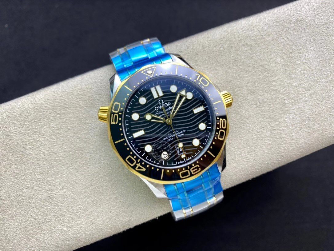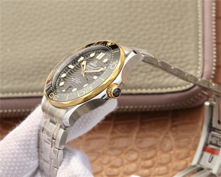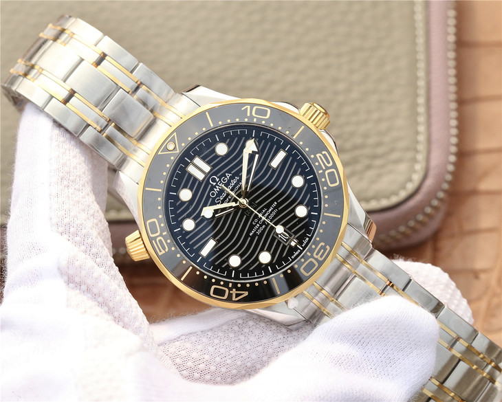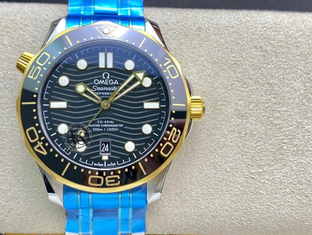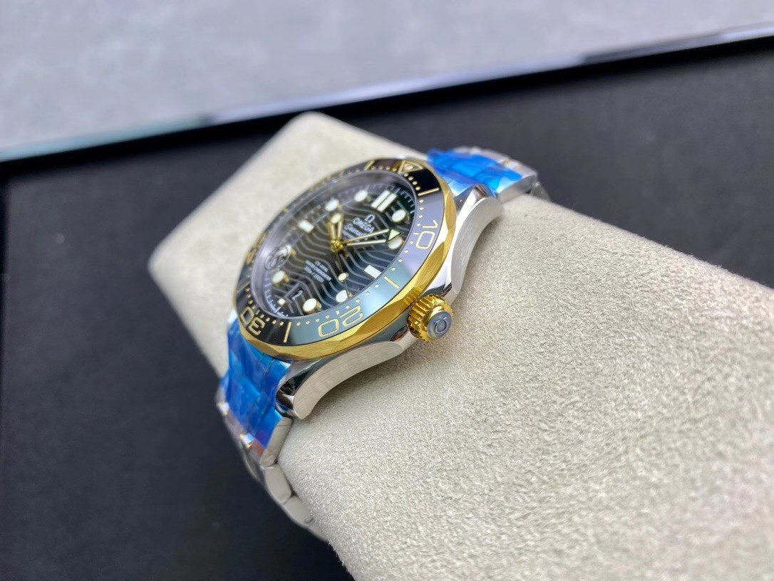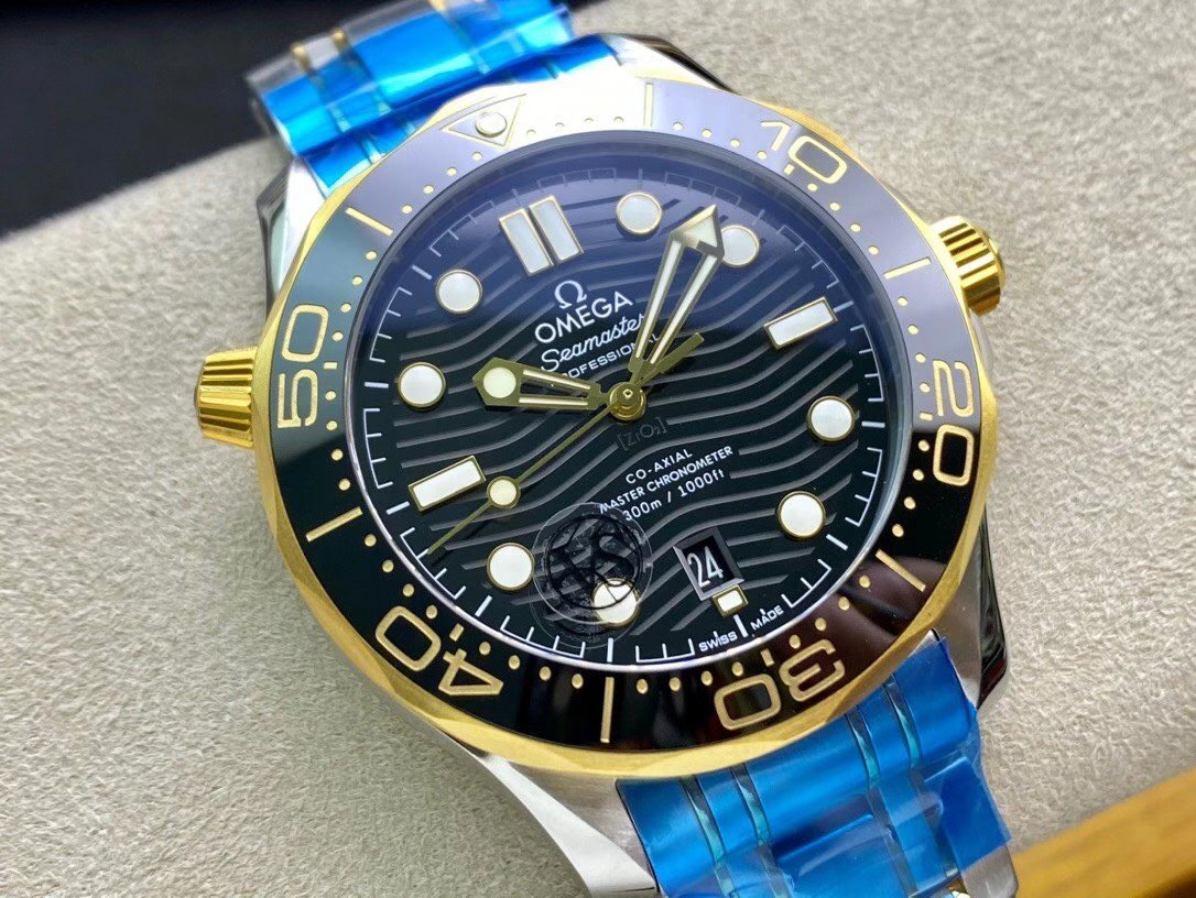 VS欧米茄海马300M间金,选对版本很重要。VS版本和正品在12点位外圈口带有贵金属印记:AU750 、狗头标 、天平秤 、欧logo,可以看是否有这个印记区分出是VS/市面版本。买家、卖家都不用担心打脸的版本。