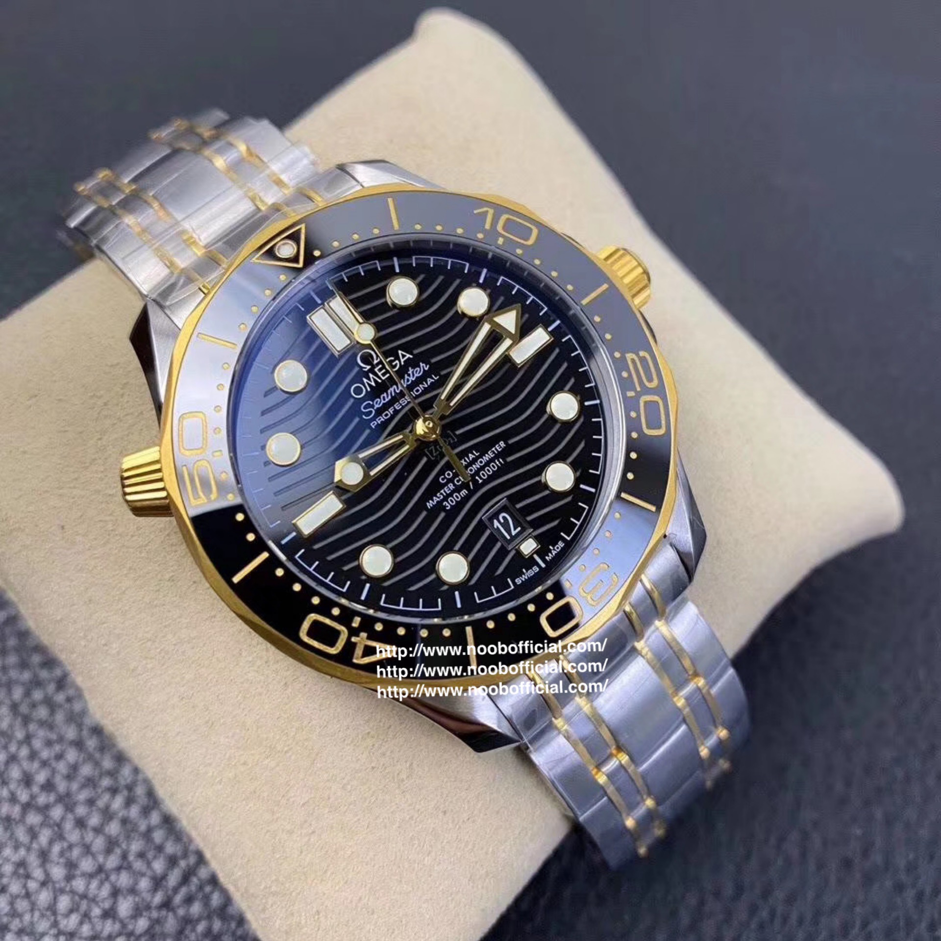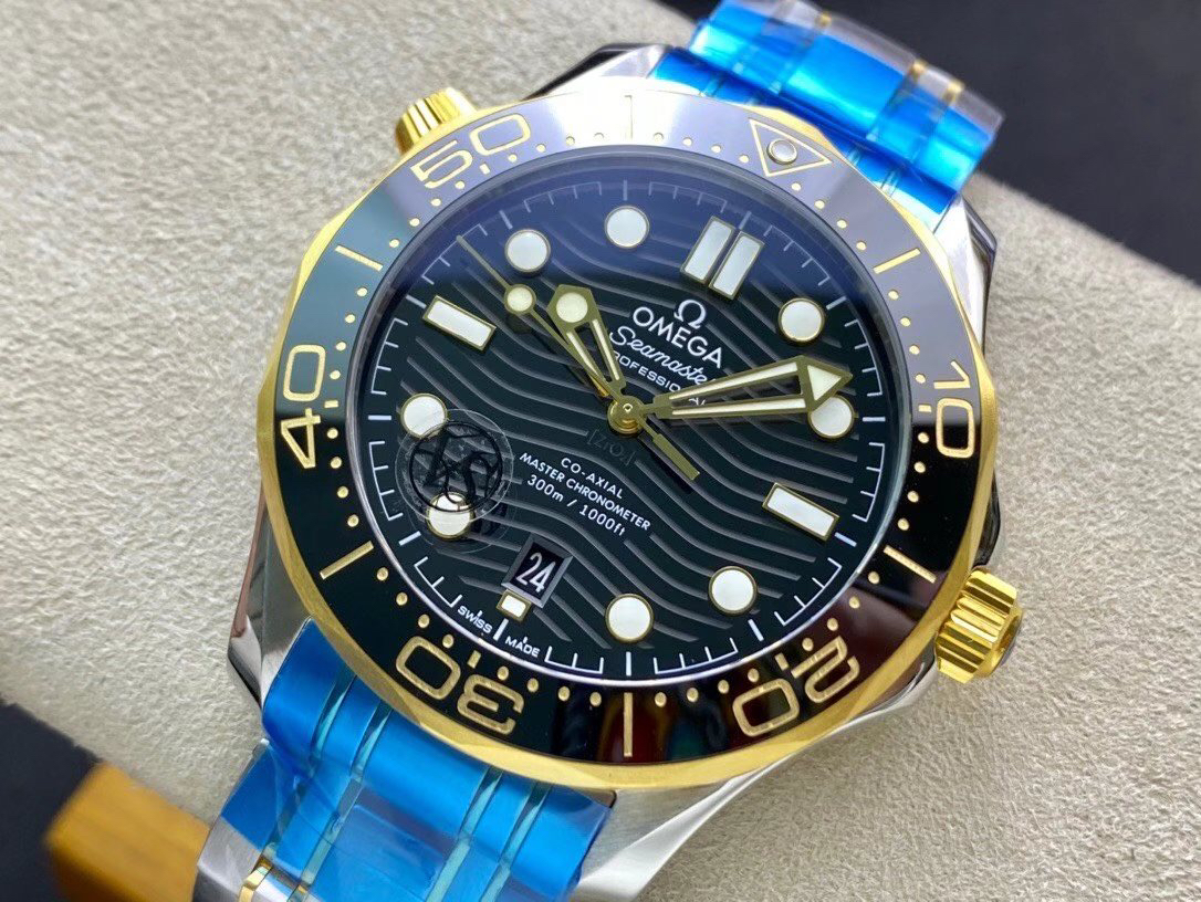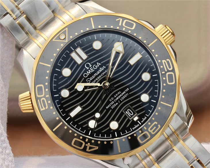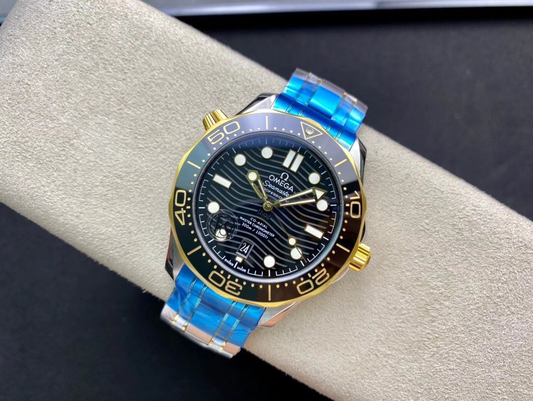 VS欧米茄海马300M间金,选对版本很重要。VS版本和正品在12点位外圈口带有贵金属印记:AU750 、狗头标 、天平秤 、欧logo,可以看是否有这个印记区分出是VS/市面版本。买家、卖家都不用担心打脸的版本。