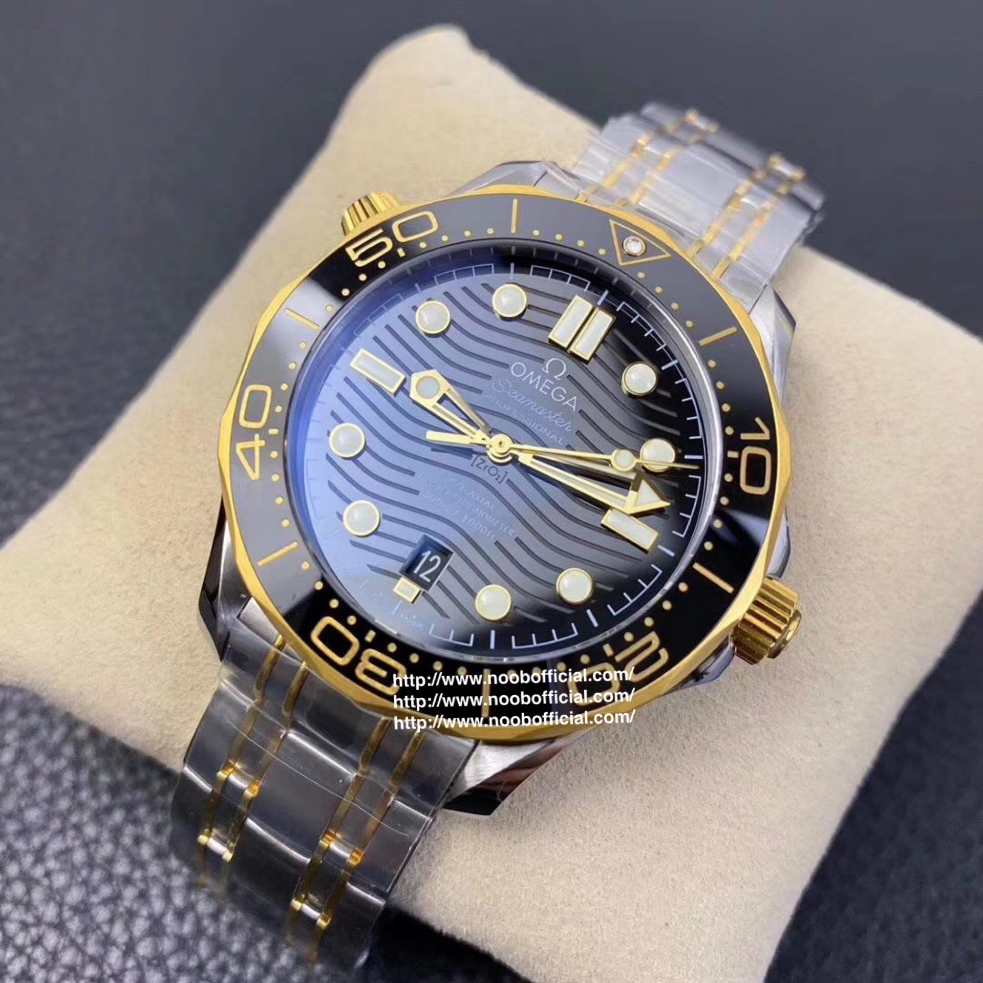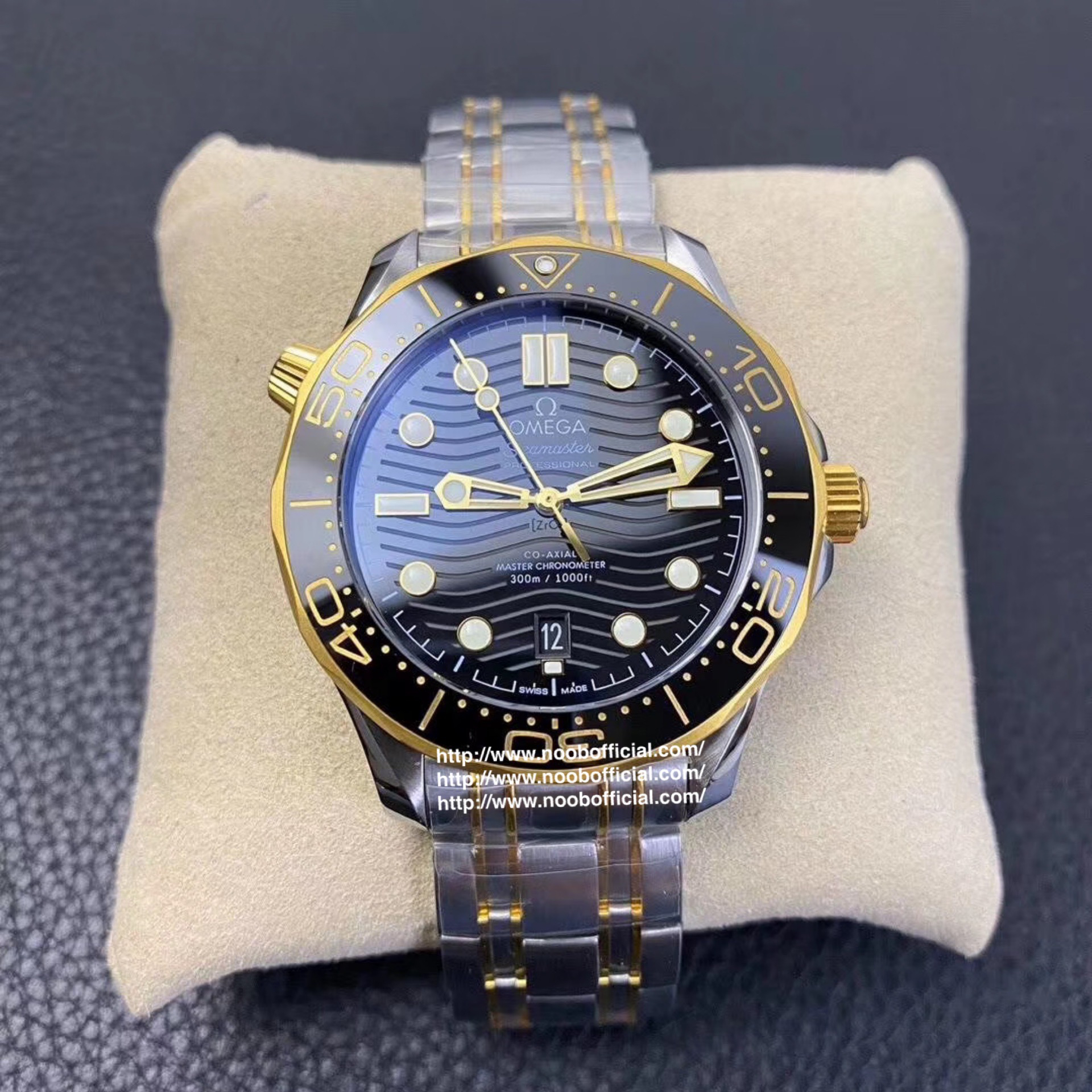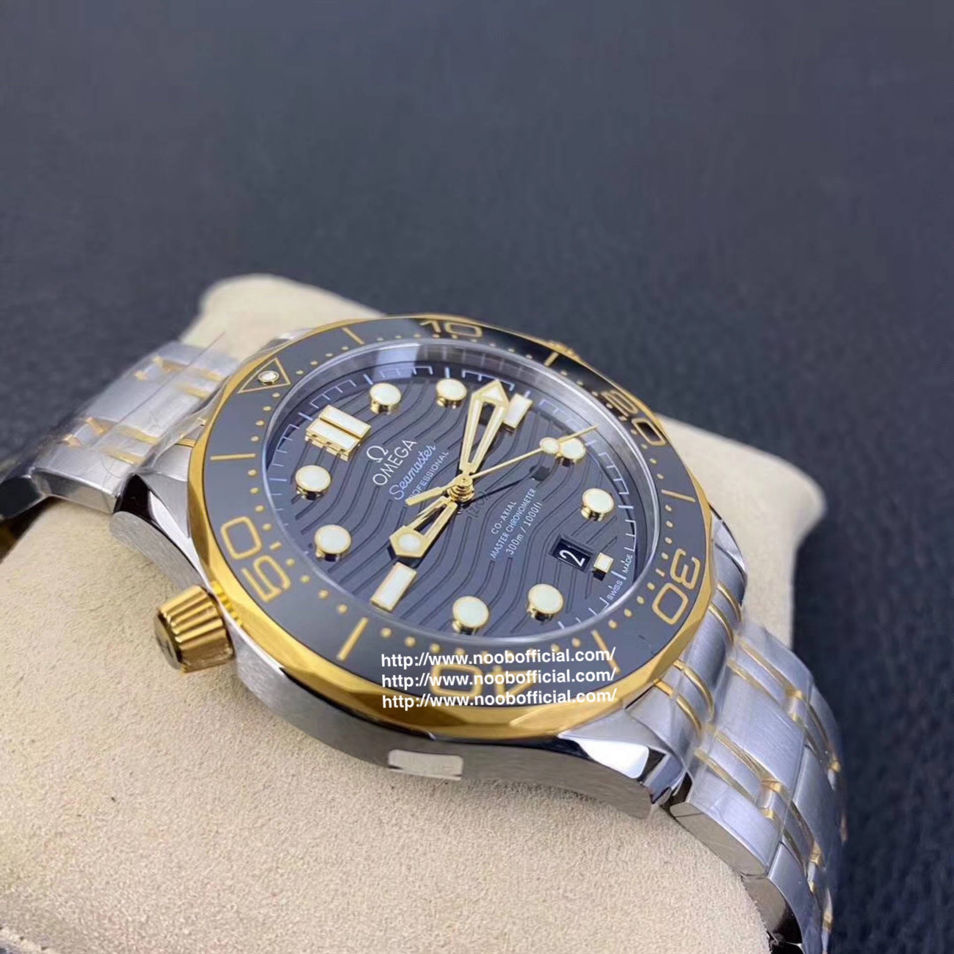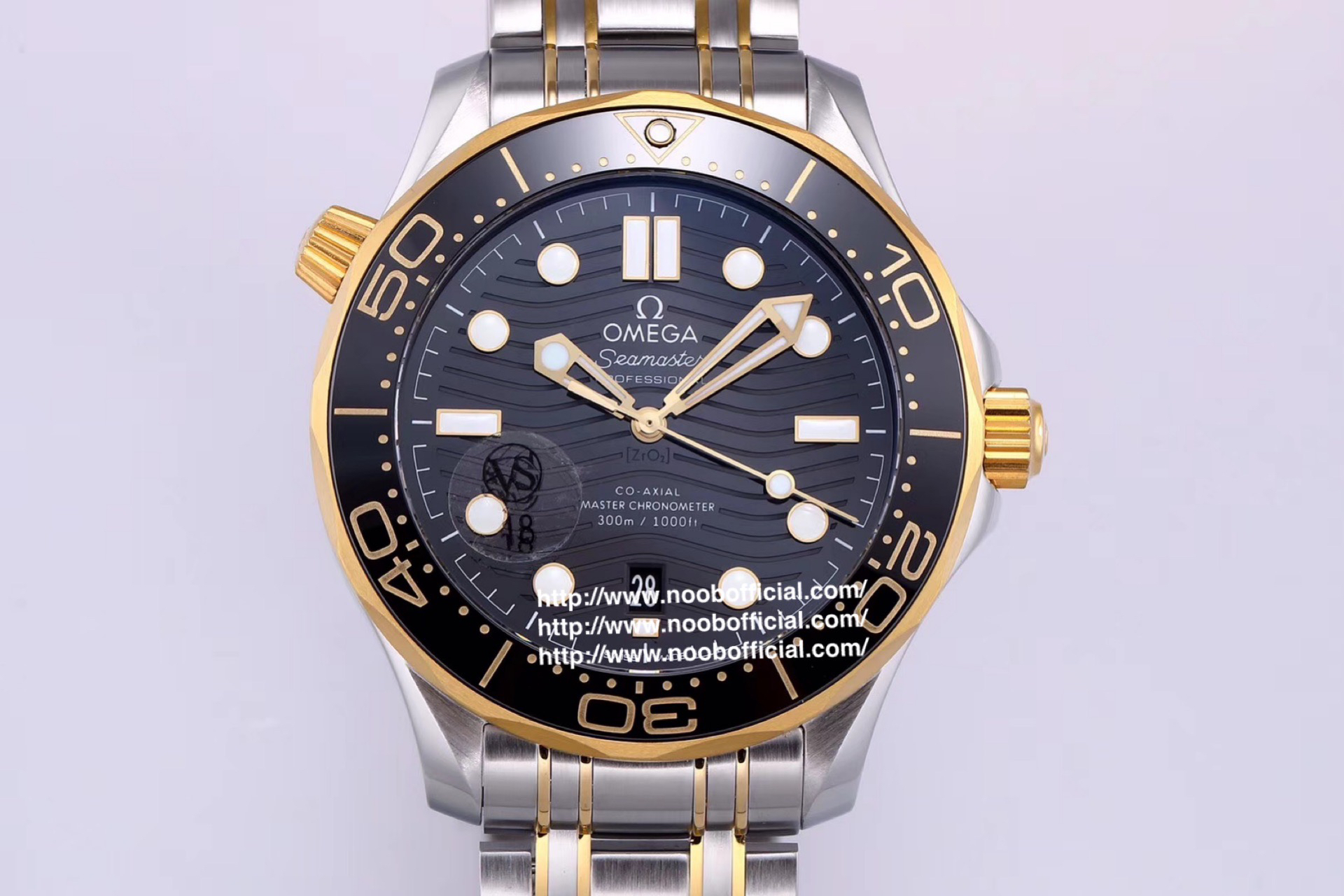 VS欧米茄海马300M间金,选对版本很重要。VS版本和正品在12点位外圈口带有贵金属印记:AU750 、狗头标 、天平秤 、欧logo,可以看是否有这个印记区分出是VS/市面版本。买家、卖家都不用担心打脸的版本。