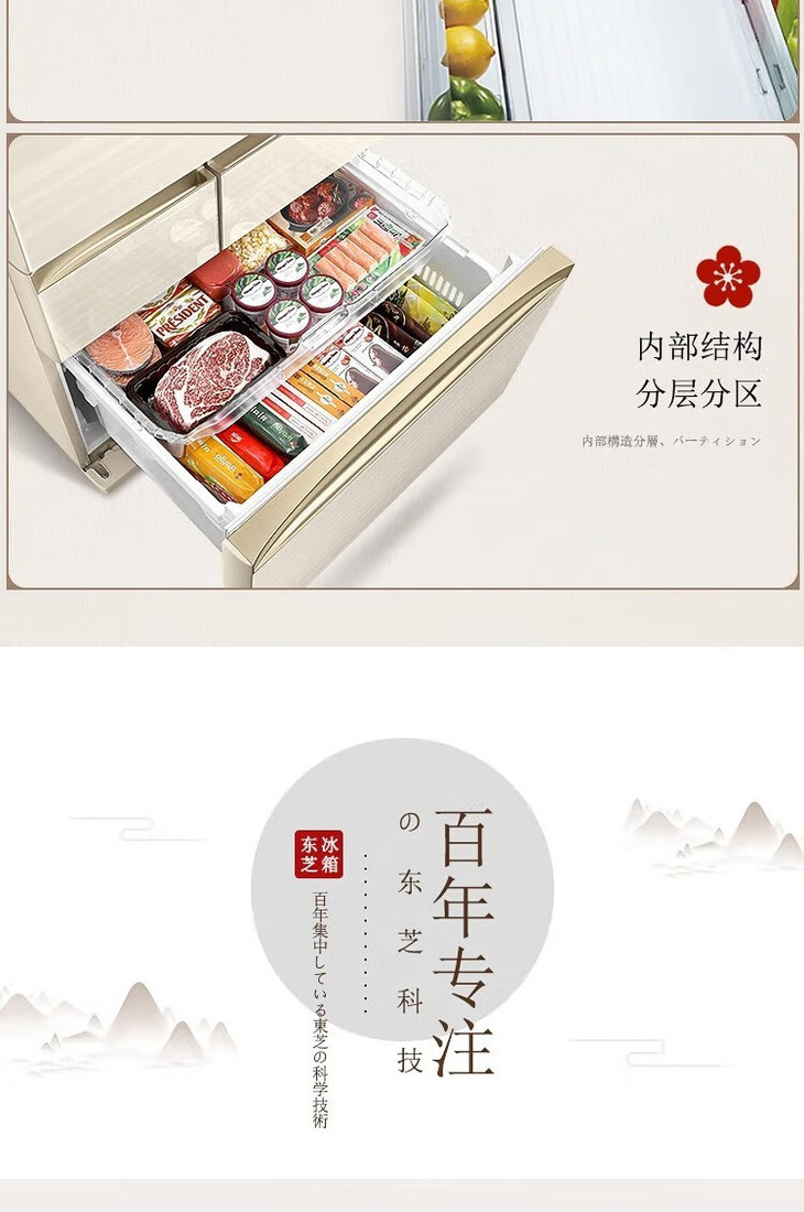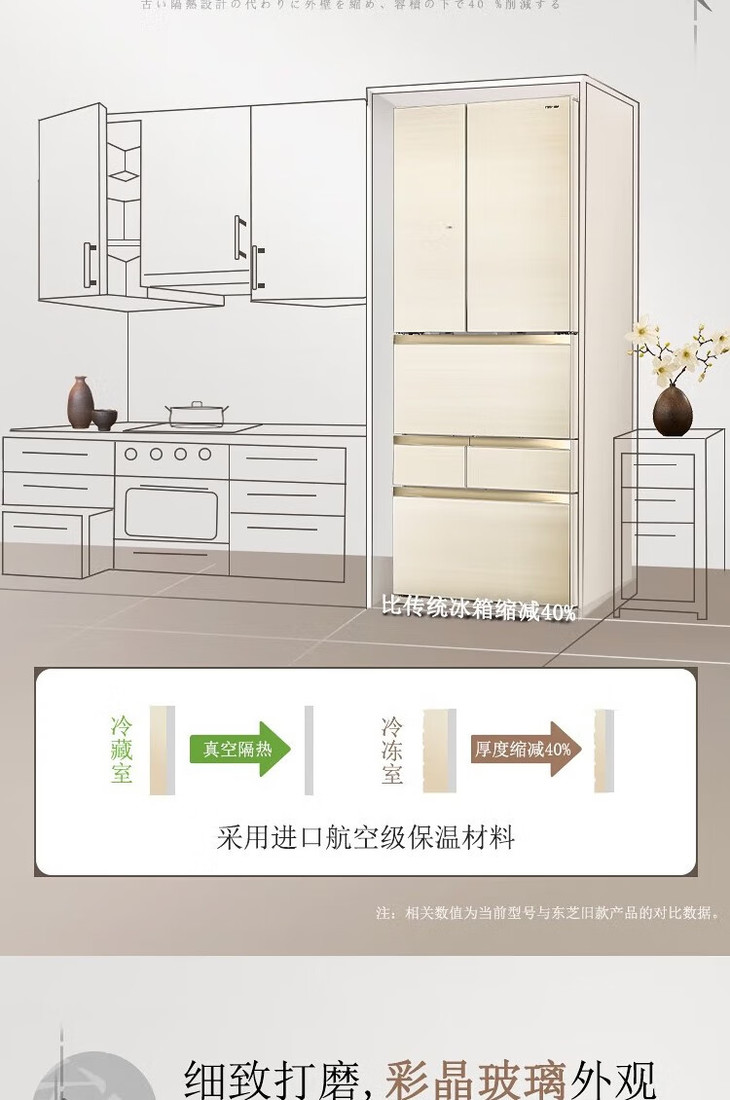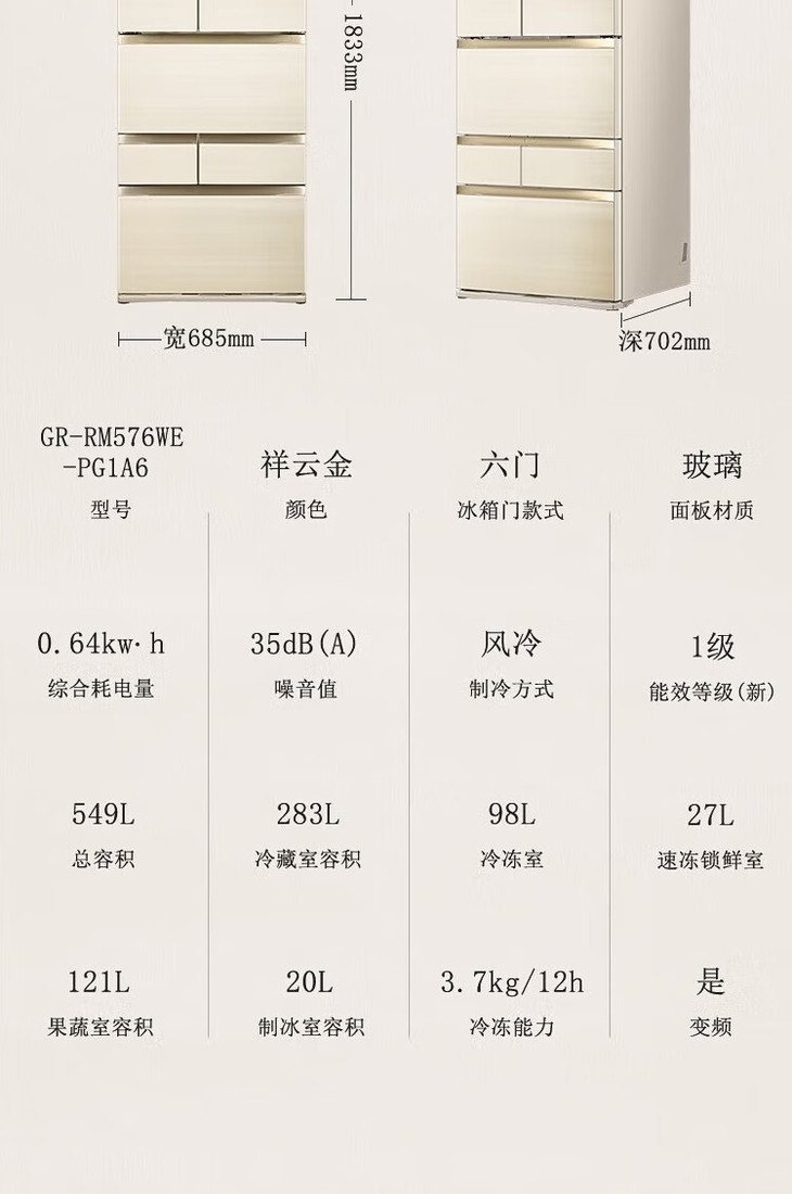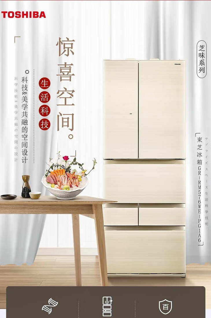 东芝(TOSHIBA)(12981)549升大容量风冷多门冰箱 双循环双系统一级能效变频冰箱 超薄独立制冰 GR-RM576WE-PG1A6