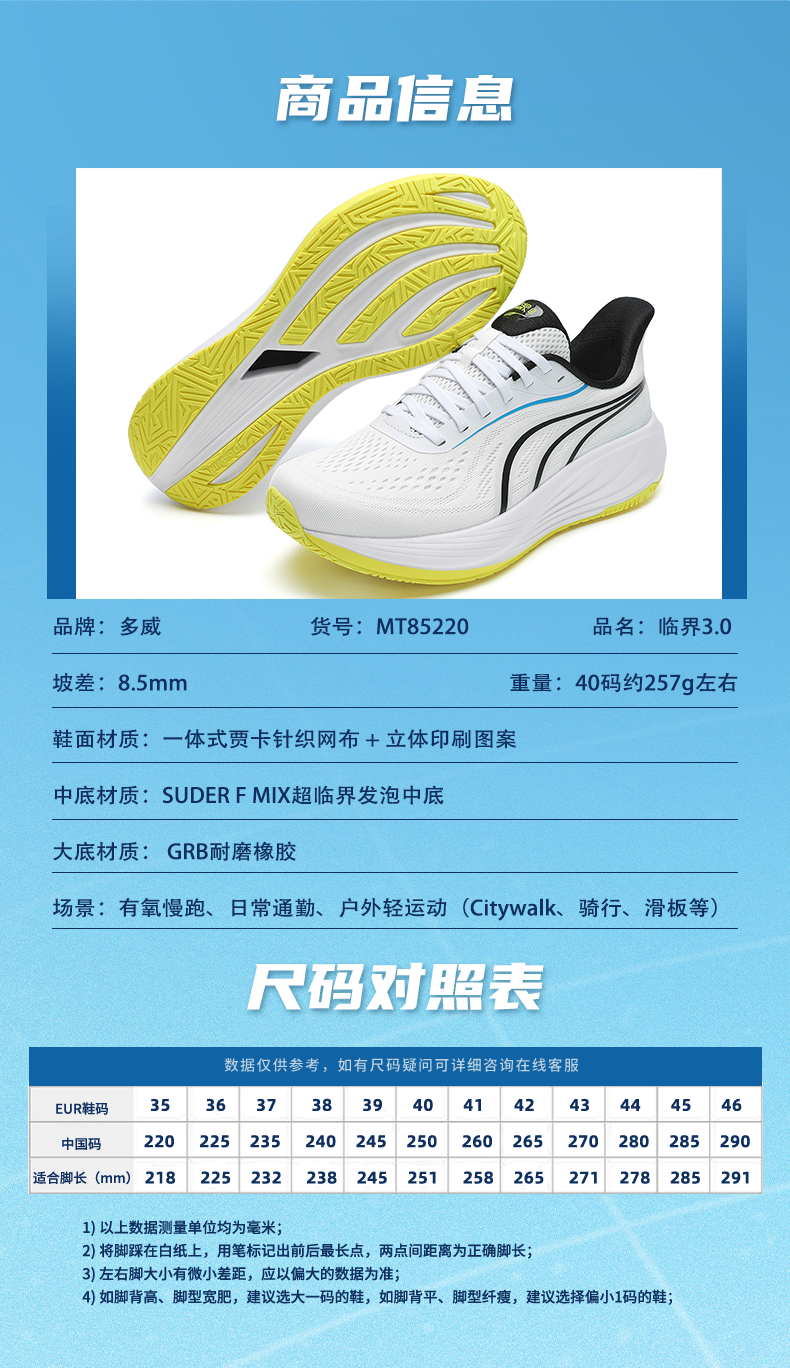 多威临界3代跑鞋男款专业缓震回弹跑步鞋女慢跑鞋透气运动鞋MT85220