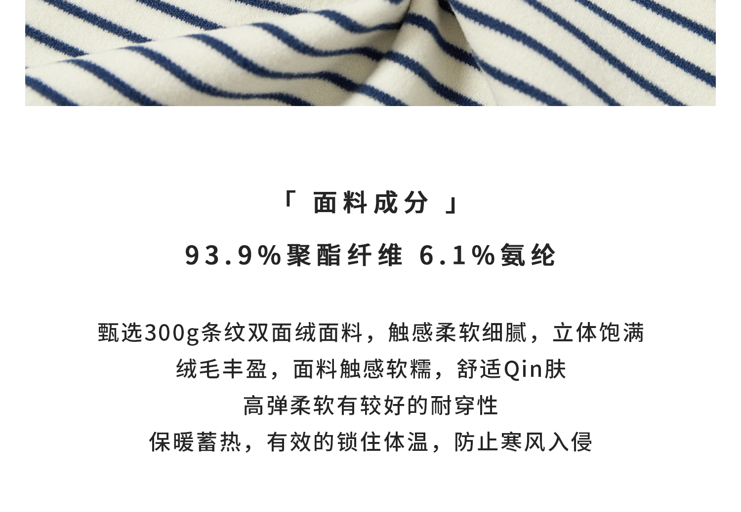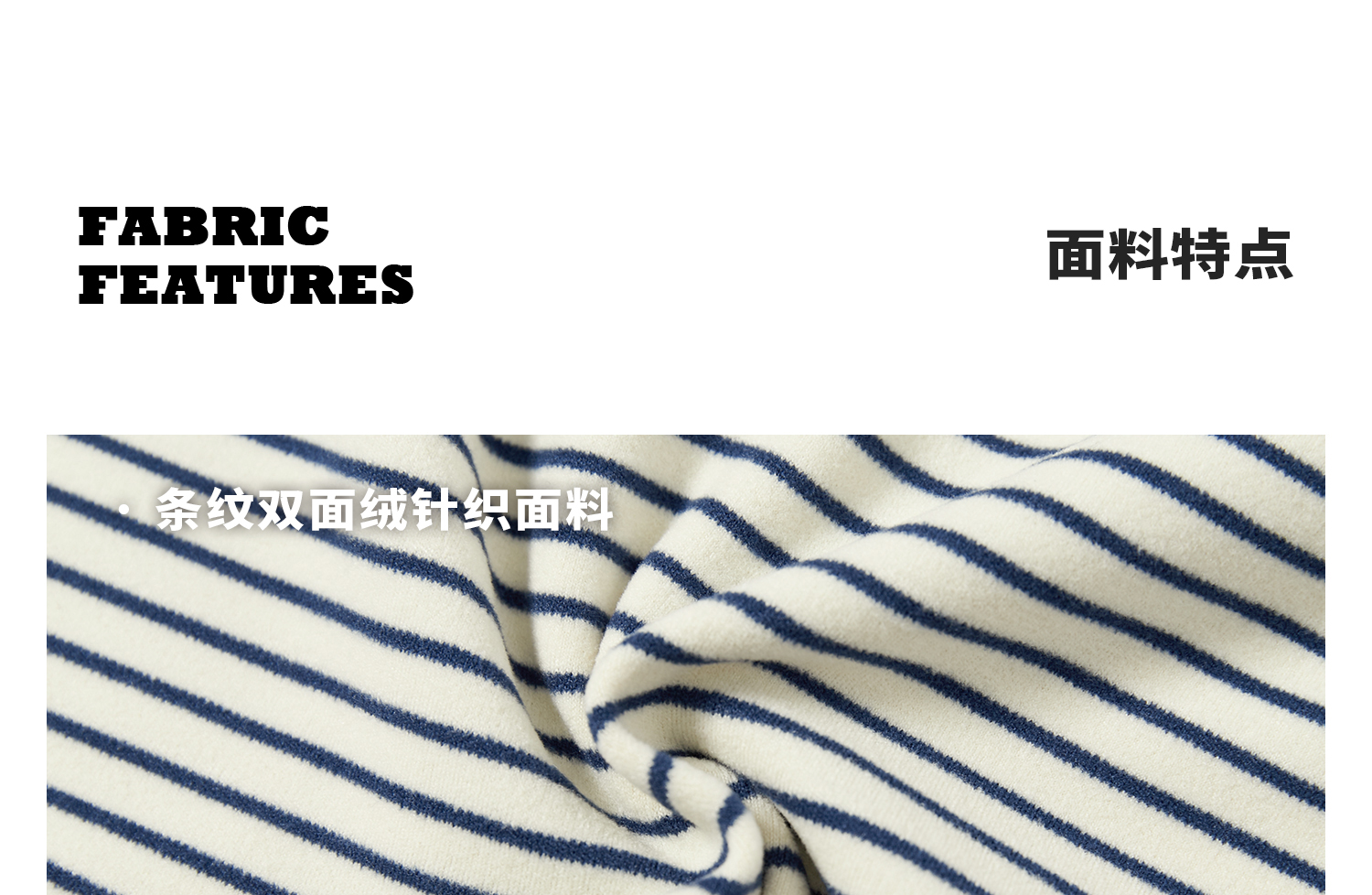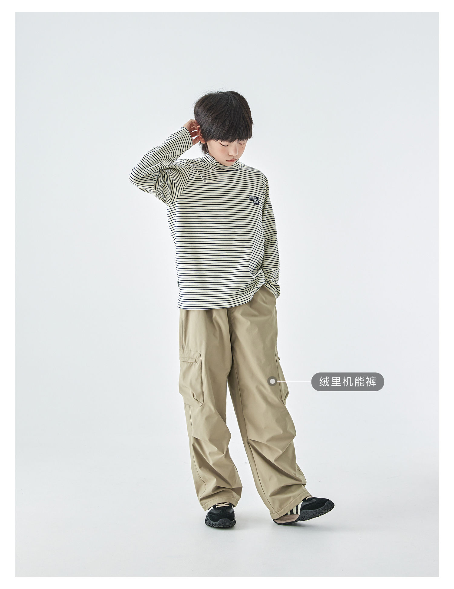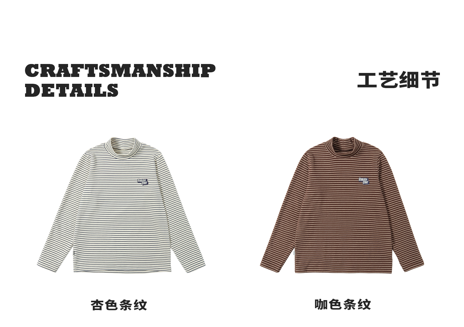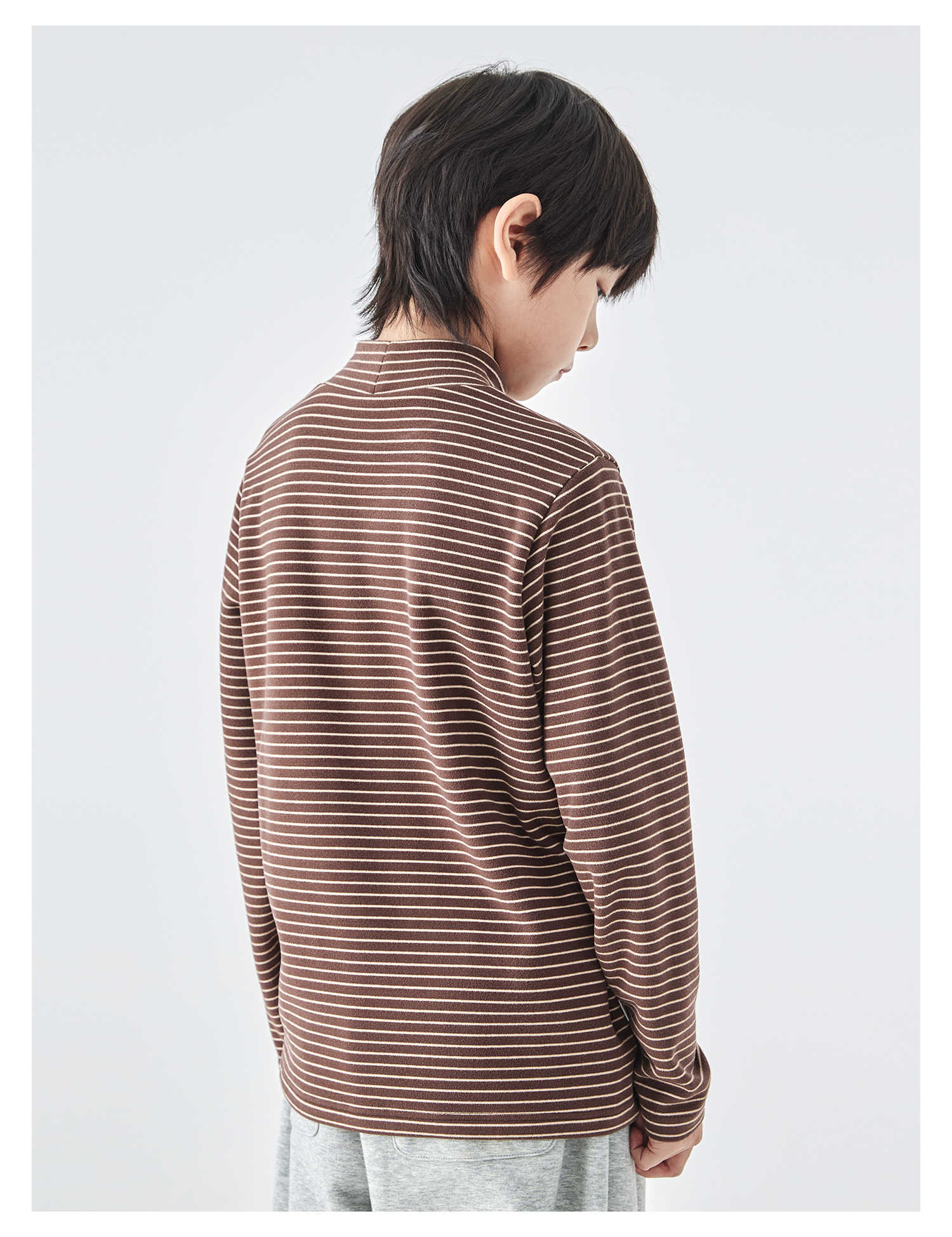 蓝汽水25年冬季新款亲子中大男童条纹T恤打底衫双面绒半高领上衣