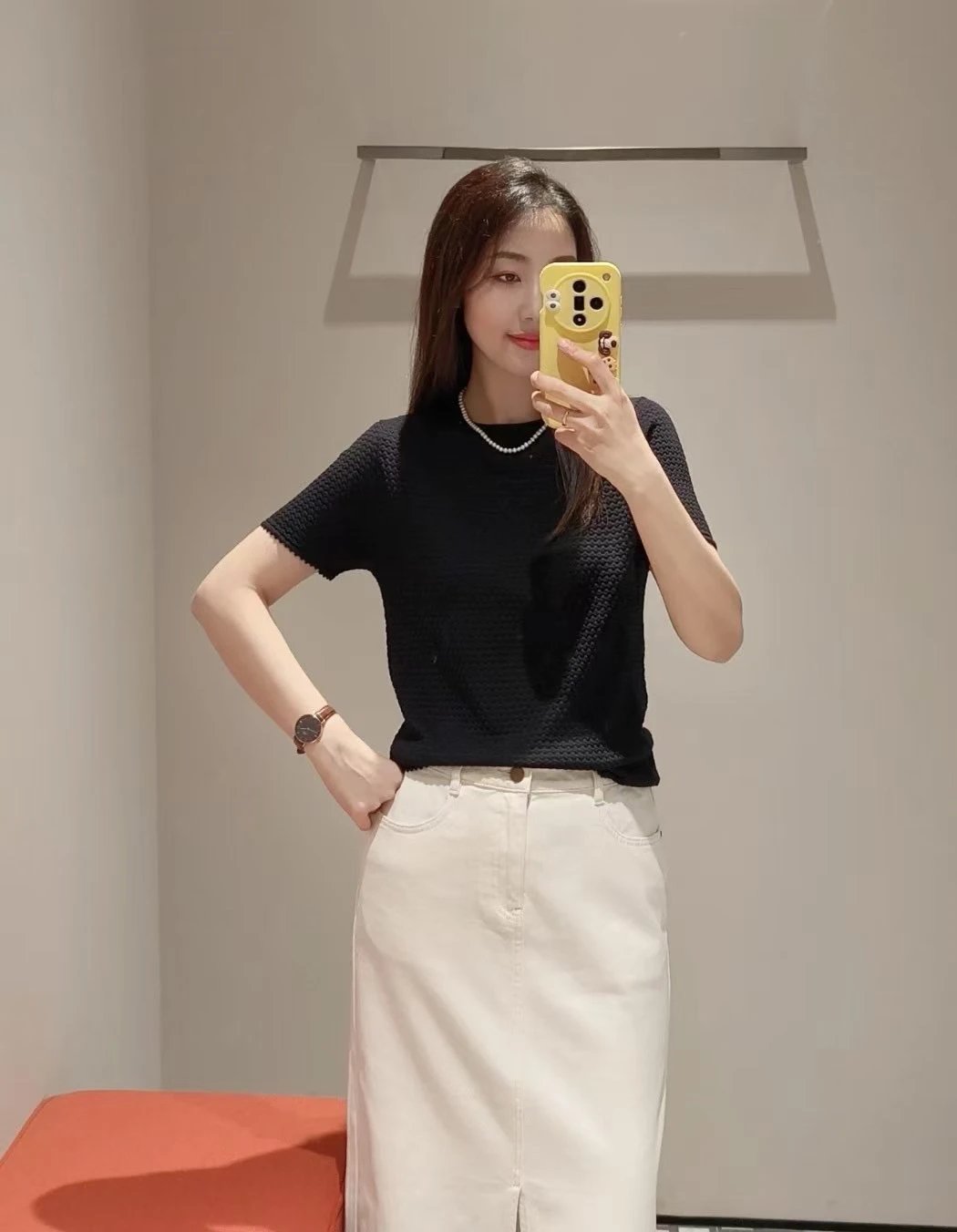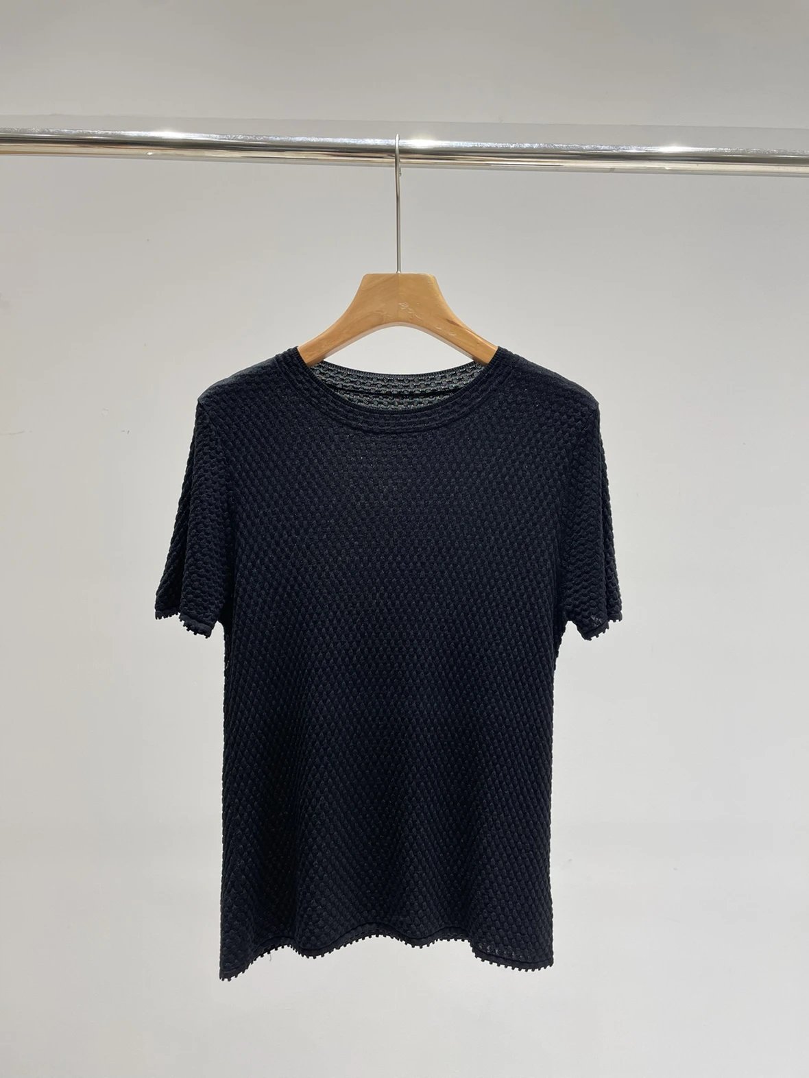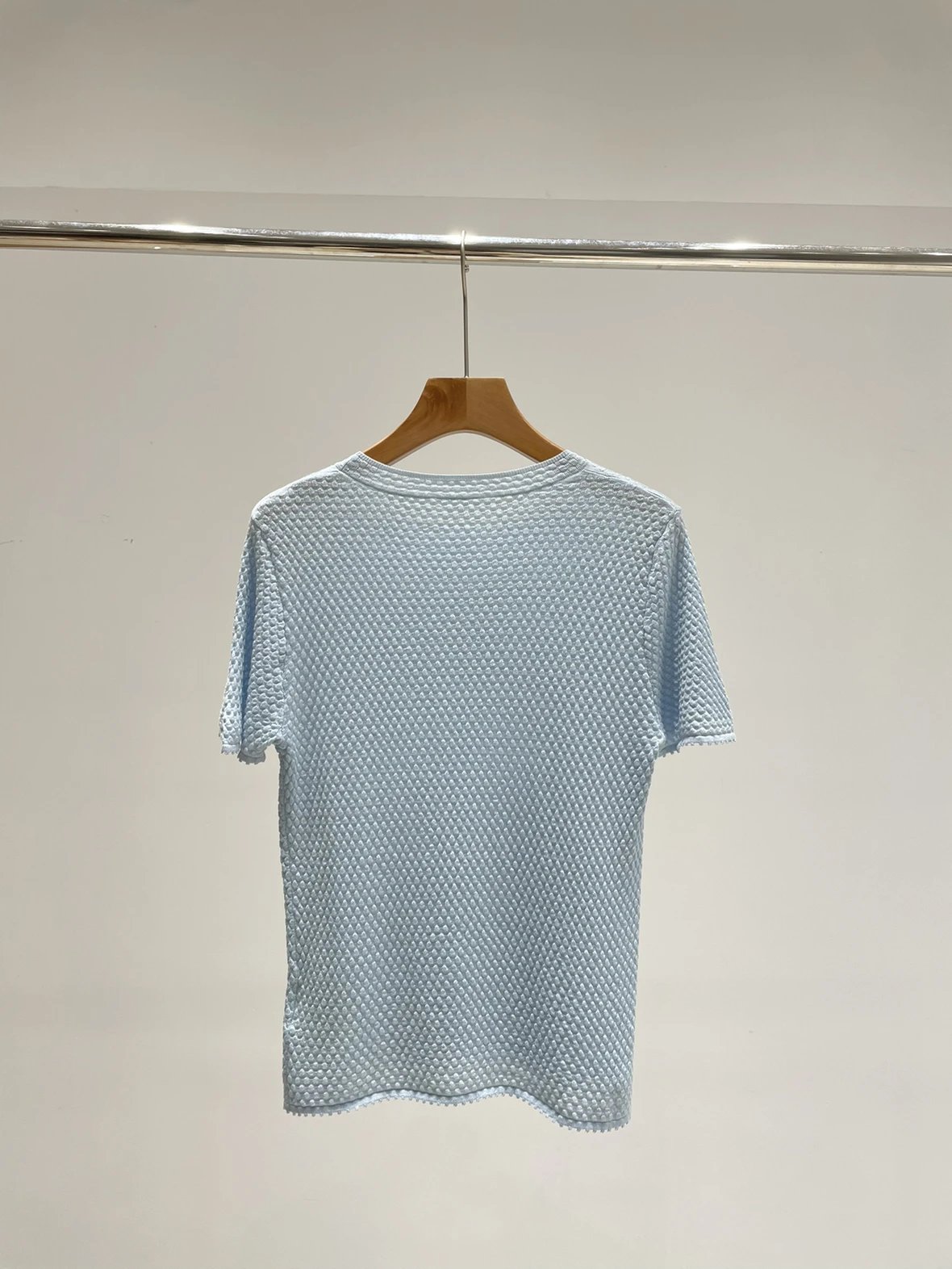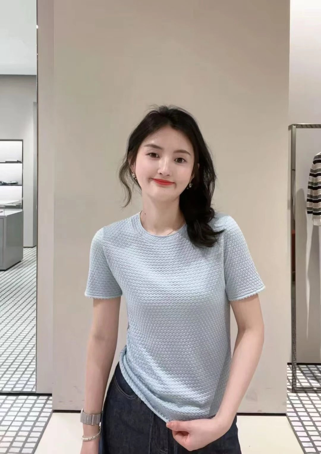 贸y公司 miu手工绣撞色圆领T恤 爆款酒红配色打底tee 客供面料