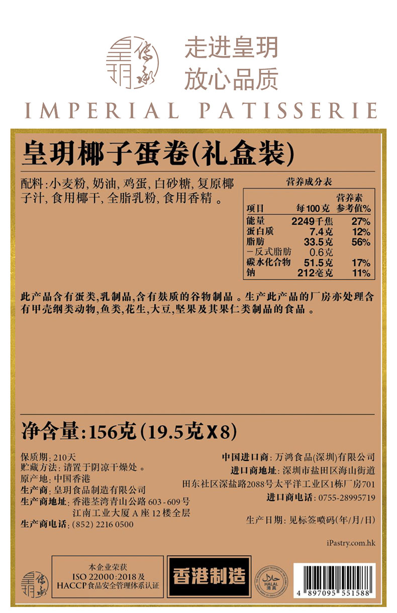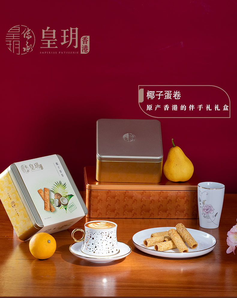 【外运冷链】香港皇玥椰子手工鸡蛋卷156g饼干早餐糕点办公室休闲进口零食小吃