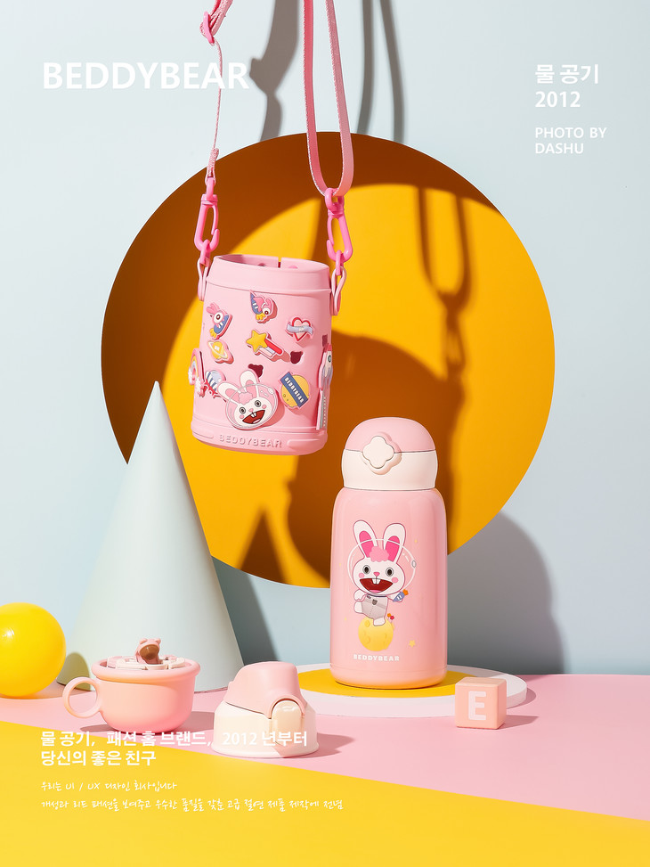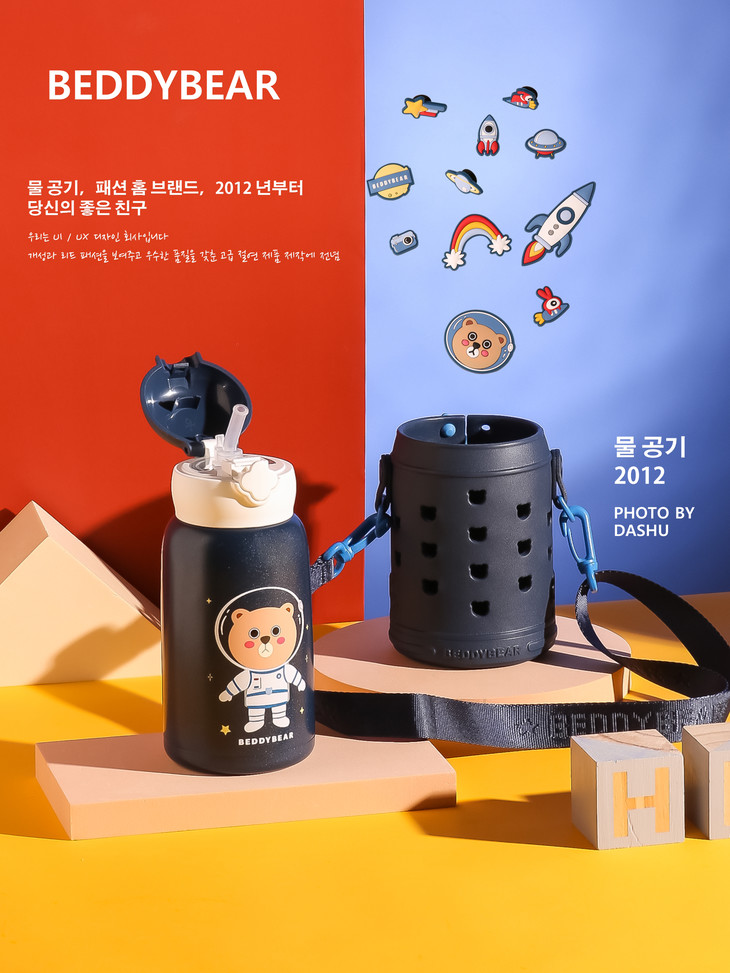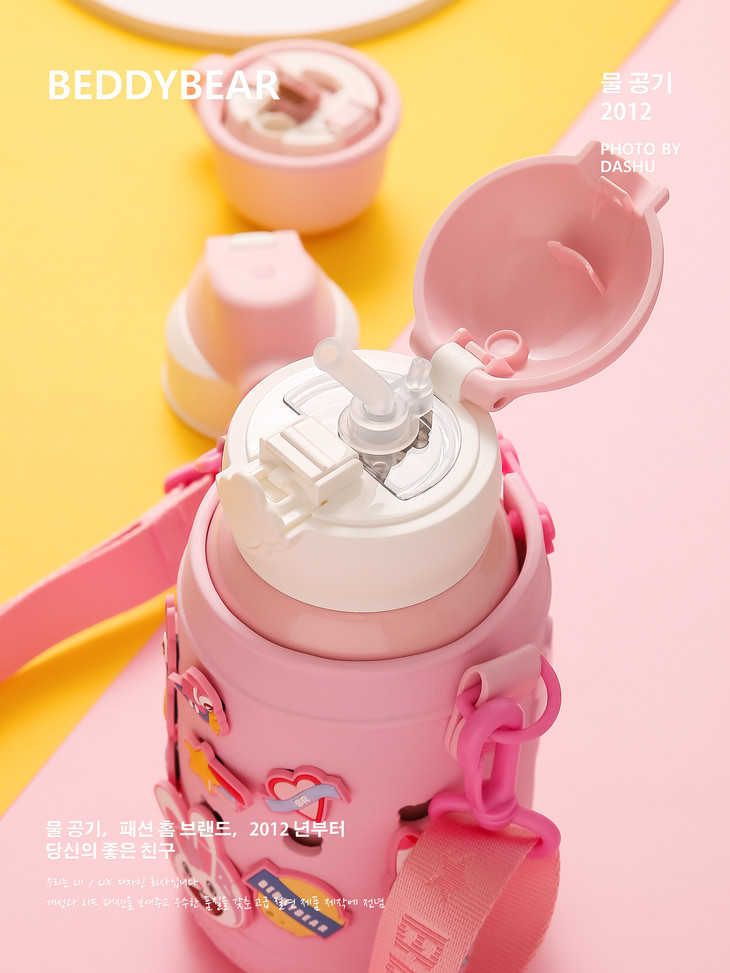 【品牌直发】【杯具熊洞洞杯系列儿童杯】保温杯 两杯盖 杯身浮雕 630ml