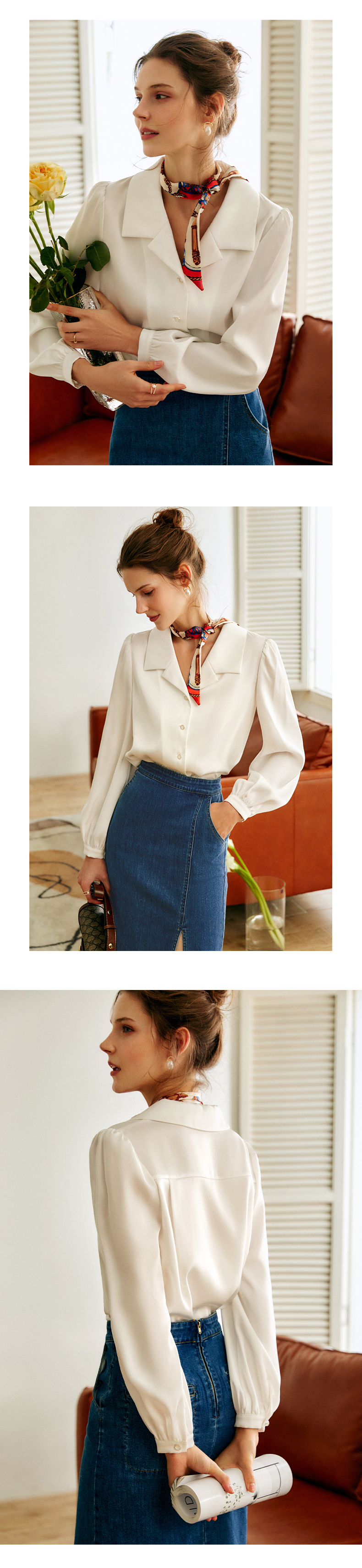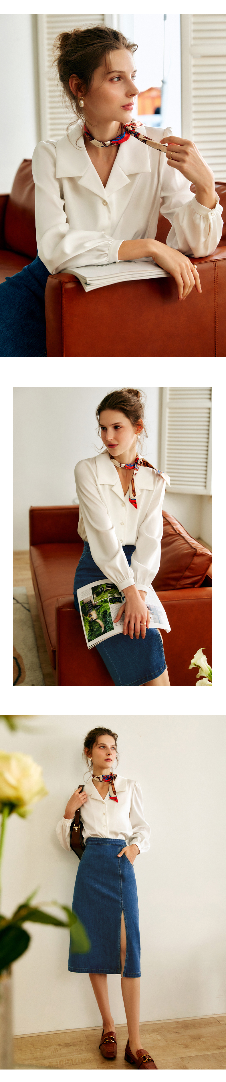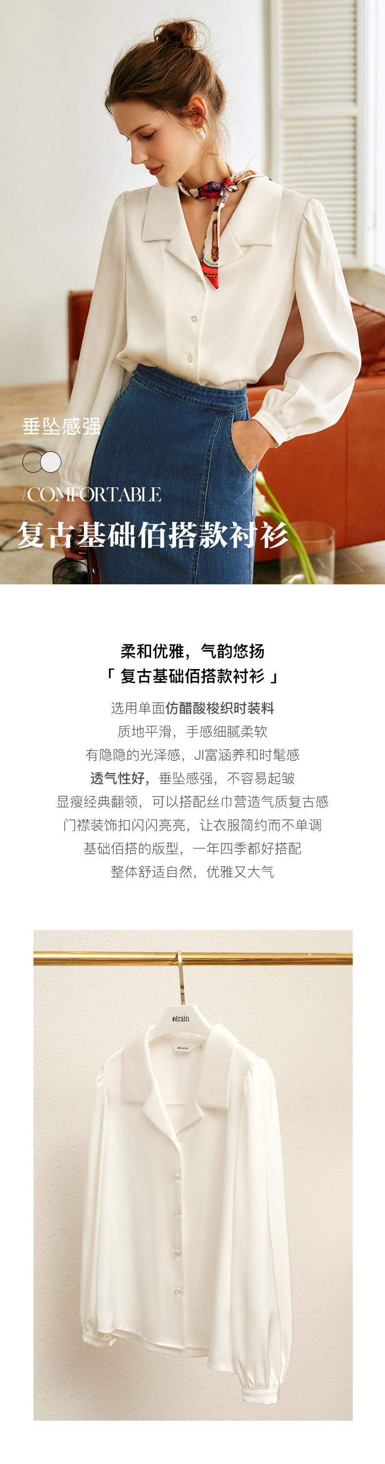 欧芮儿白色翻领衬衫女秋季2022新款宽松显瘦时尚法式复古长袖上衣