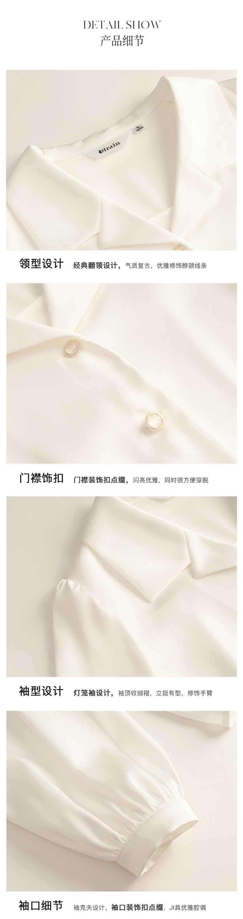 “精致”是欧芮儿olrain品牌文化的核心,欧芮儿认为,精致的女人,不但要外在动人,更要内在迷人,内外兼修,有魅力、有气质、有内涵,自信而不自傲,优雅而不矫揉,自有万种风情而不轻浮,更不故作矜持。