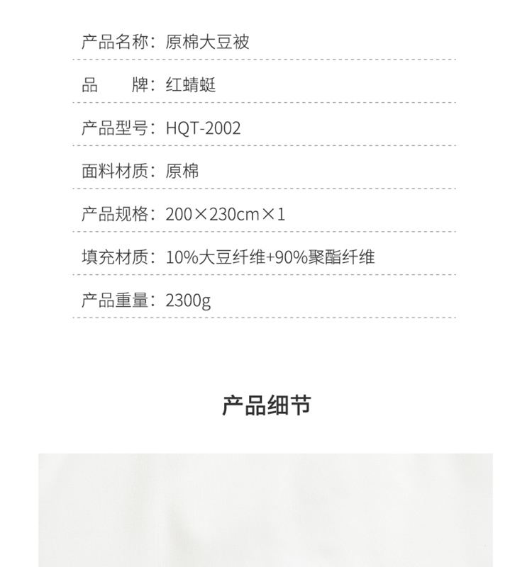 红蜻蜓 原棉大豆被 2300g HQT-2002