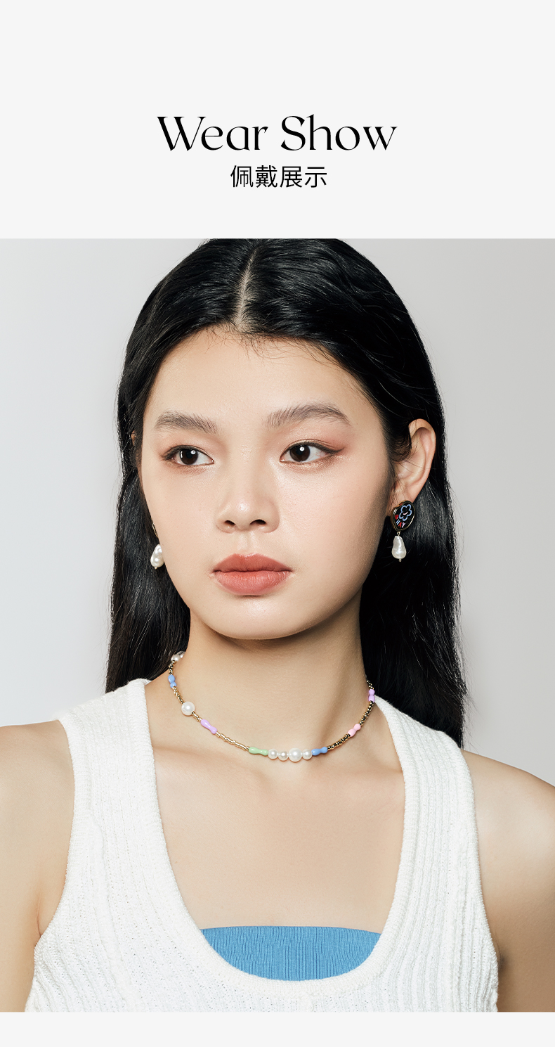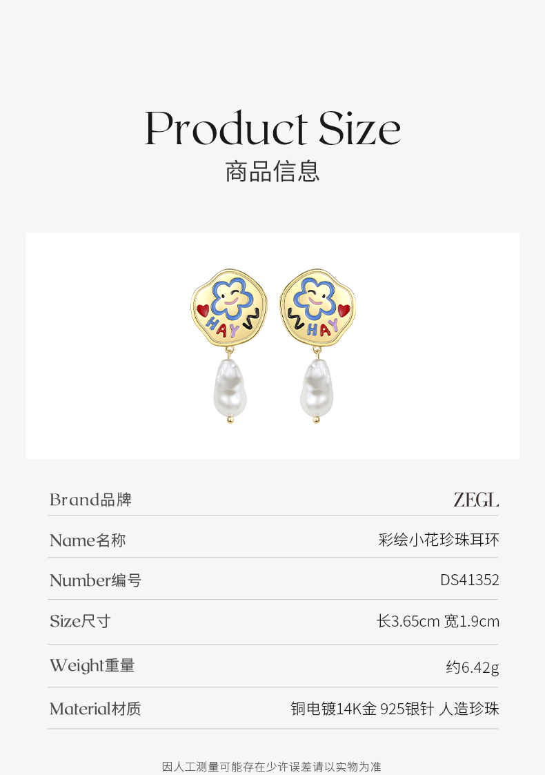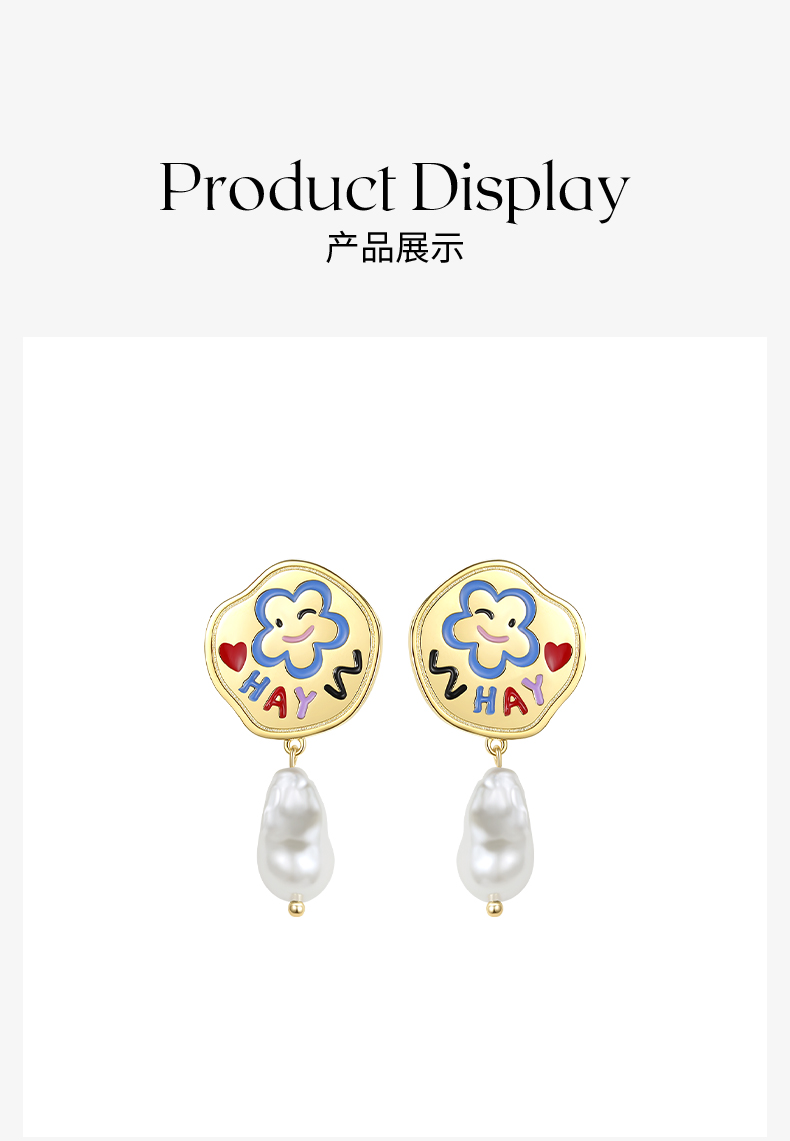 ZEGL设计师童心彩绘系列笑脸珍珠耳环女耳钉银针耳饰