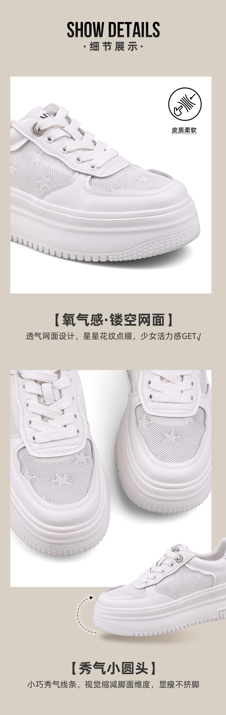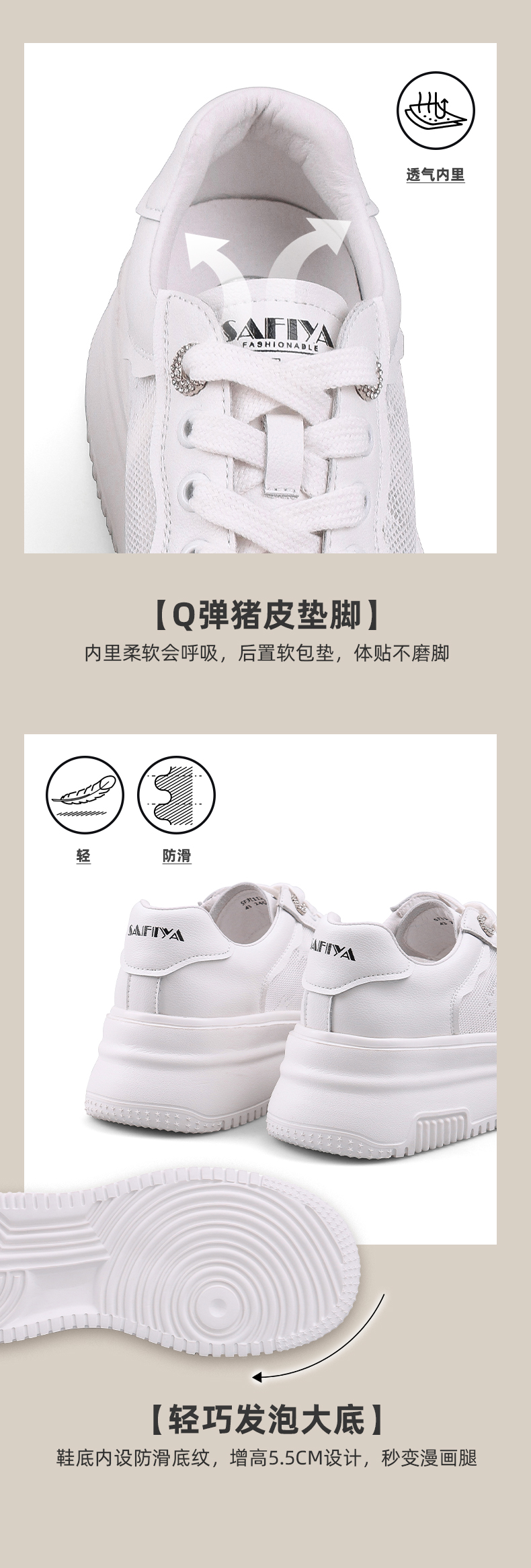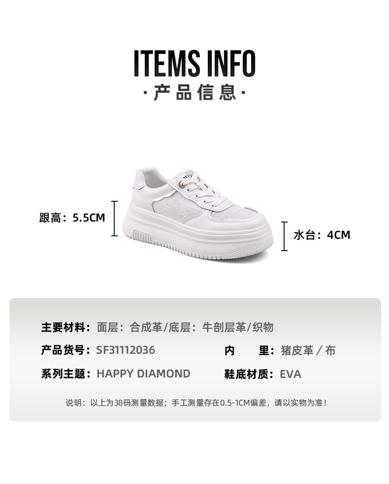 Safiya/索菲娅 2023年春季新款厚底增高透气网面休闲板鞋 SF31112036