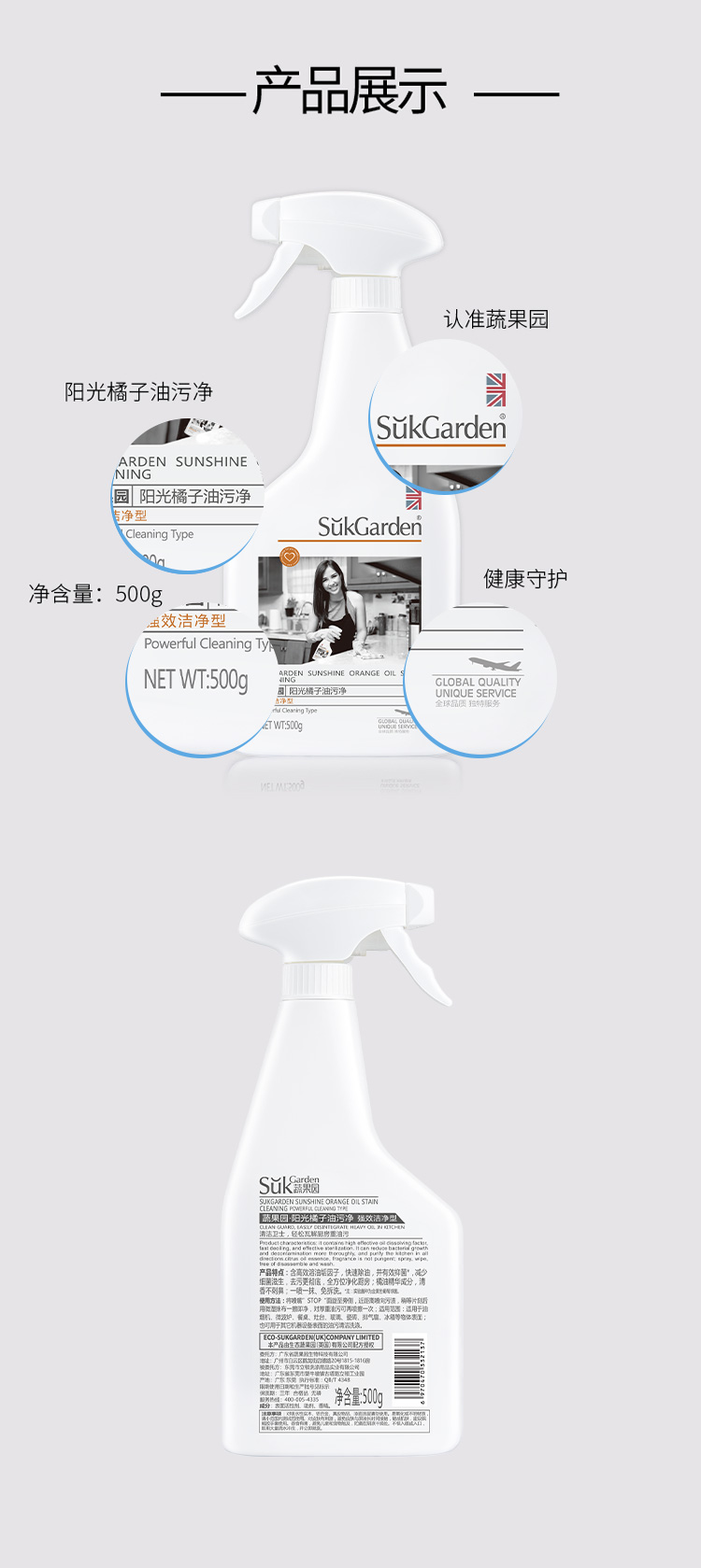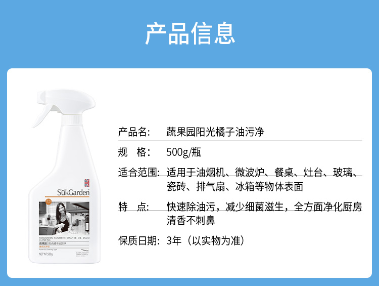 【油污净组合】SukGarden蔬果园阳光橘子油污净(促销装)500g*3瓶