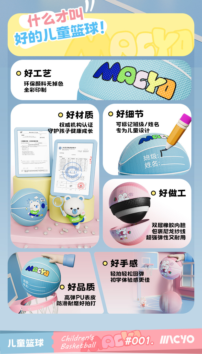 【赠打气筒+气针】MACYO/麦克羊儿童5号篮球 一体成型高弹皮球 小学生训练专用球