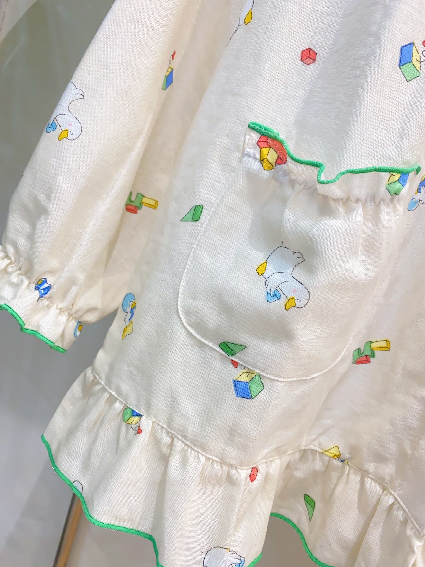 亲子“软萌鸭”,和女儿一起住进童话里,米白底色上,散落着歪头的小白鸭与彩色积木,双层纱透气亲肤
