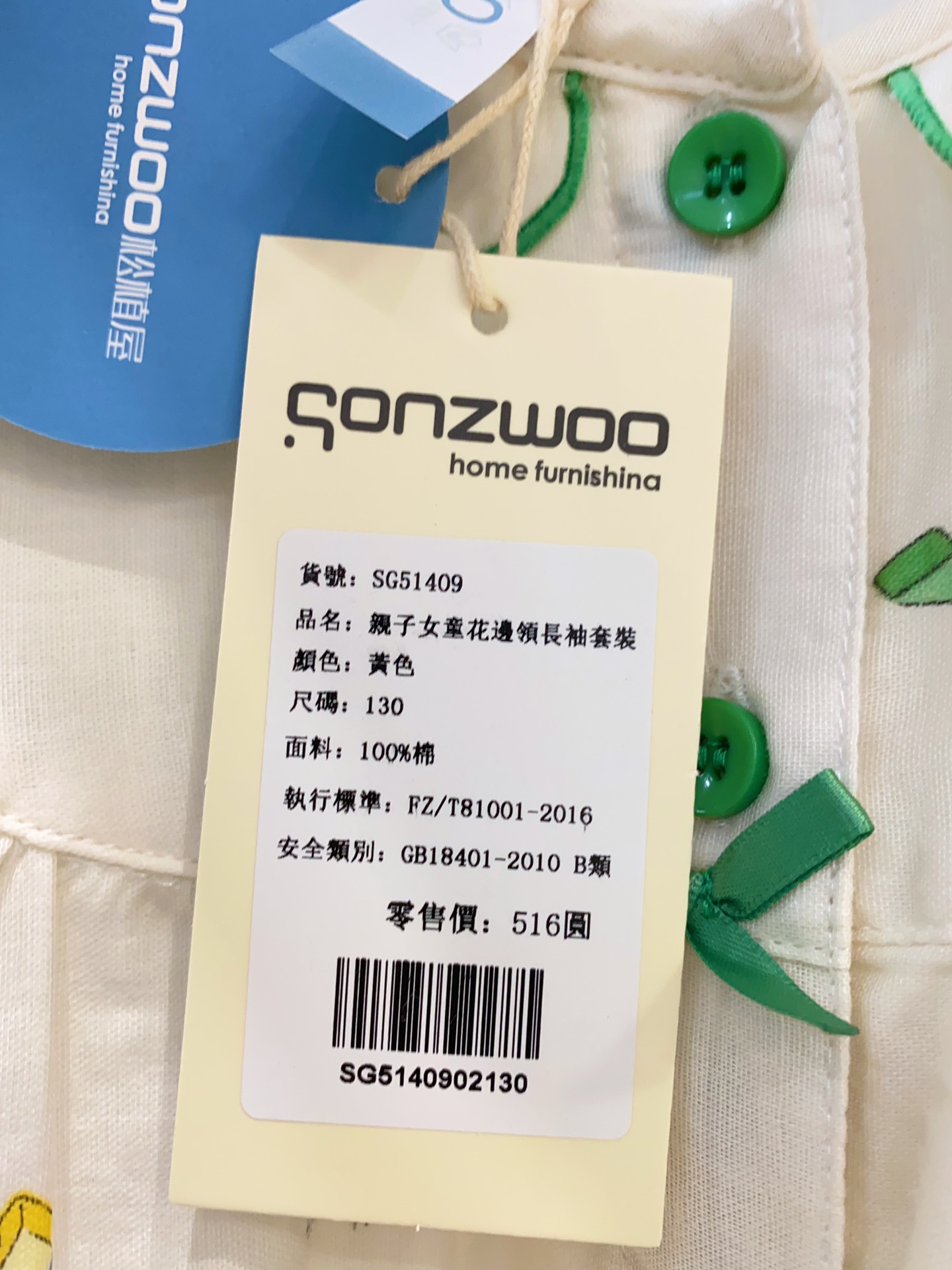 面料:100%棉