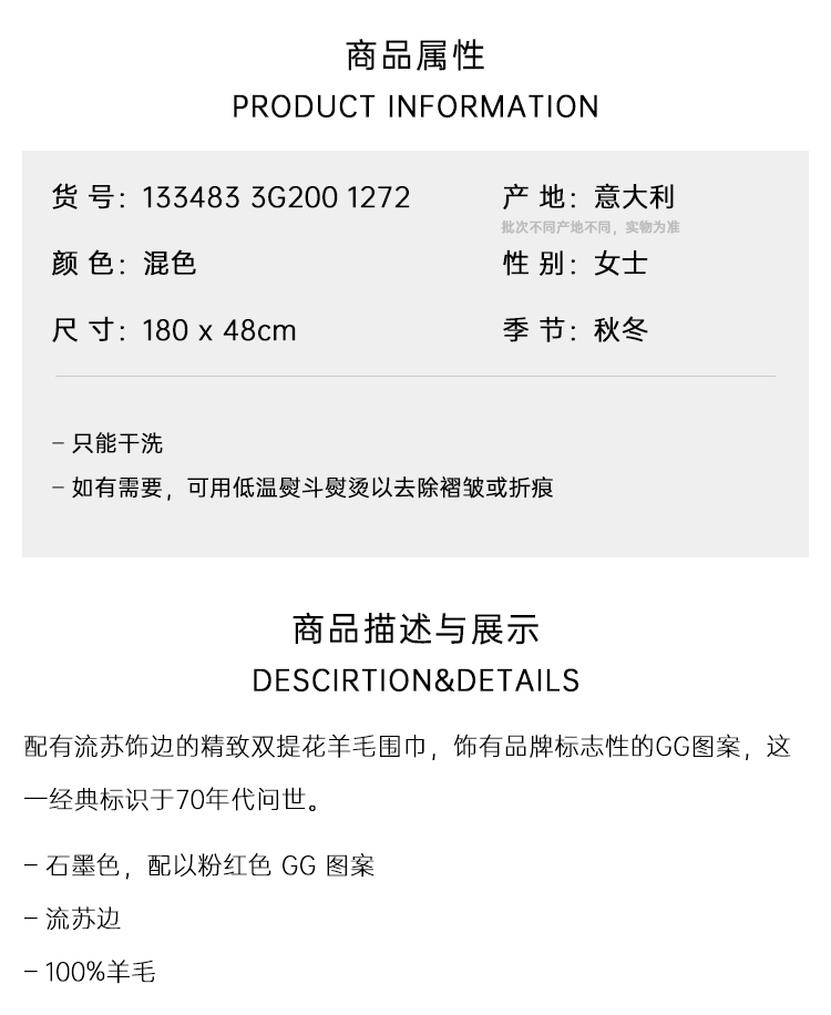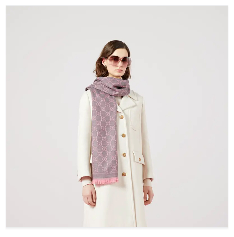 【二】GUCCI 古驰 女士GG提花图案羊毛针织围巾 混色 133483 3G200 1272