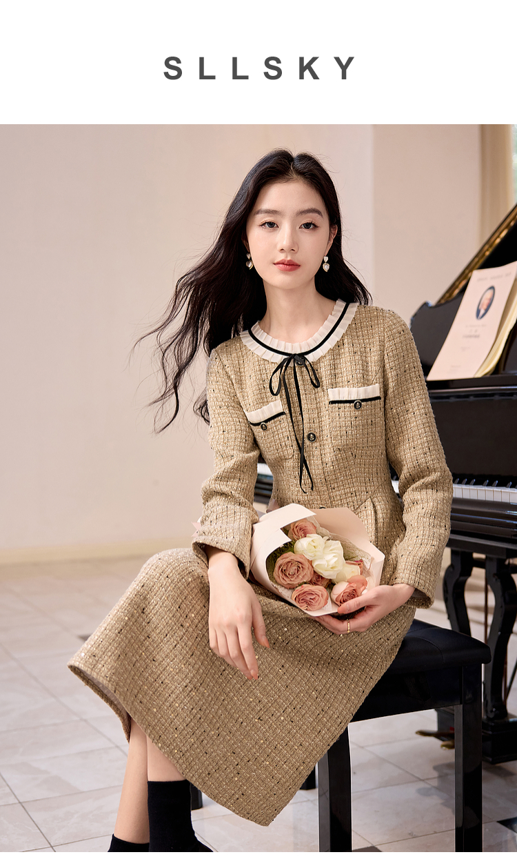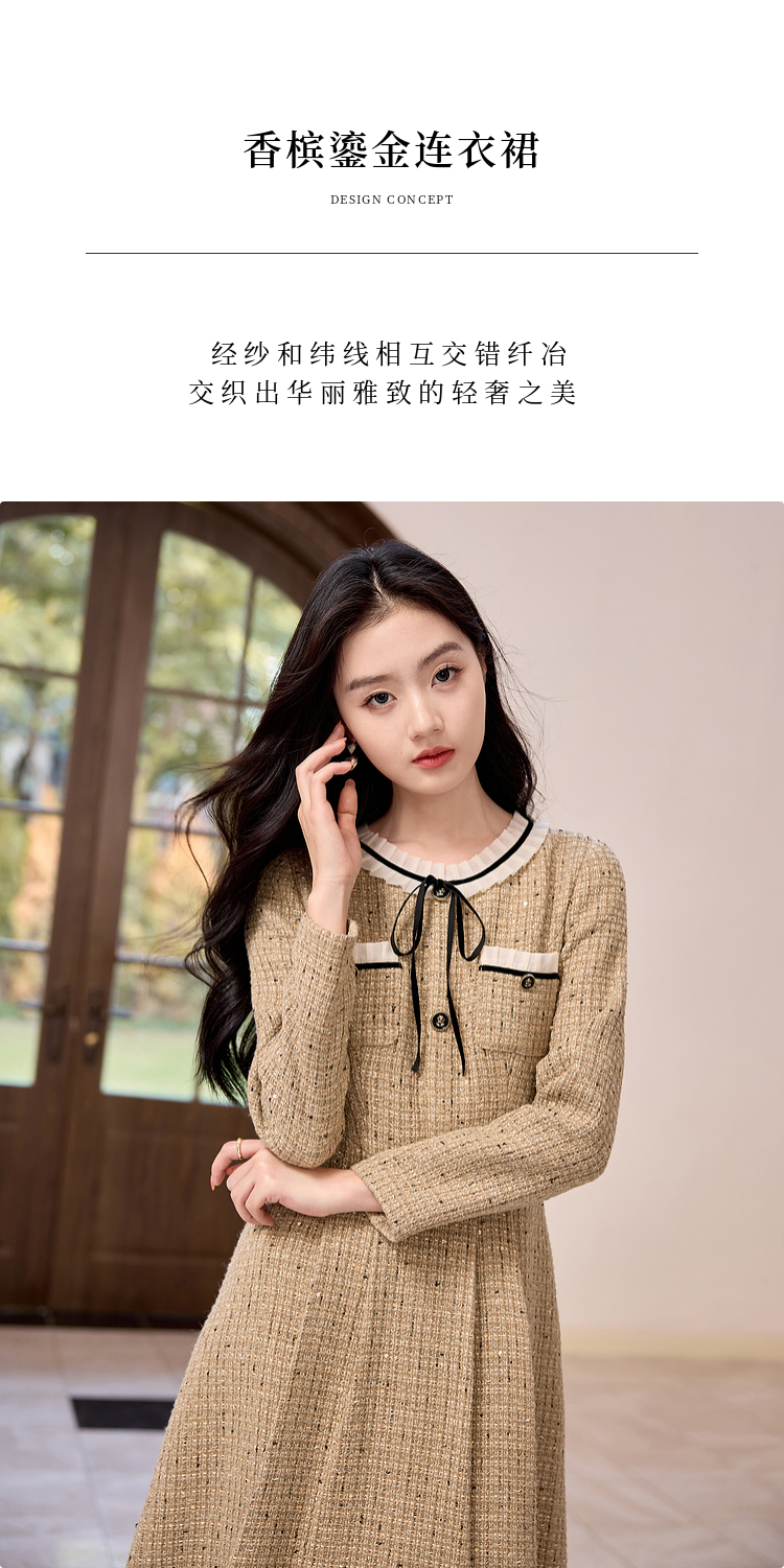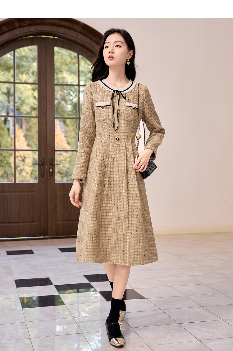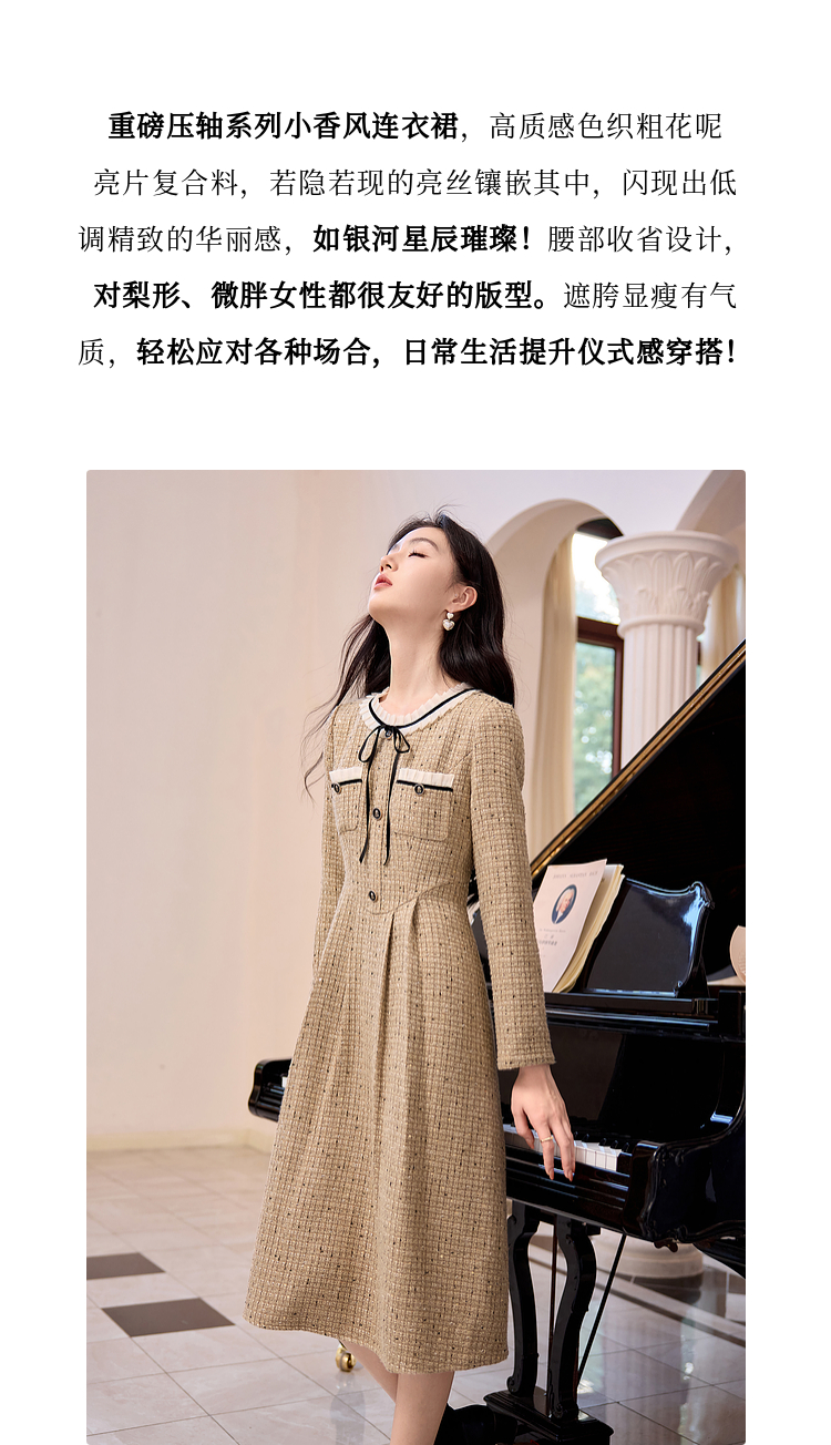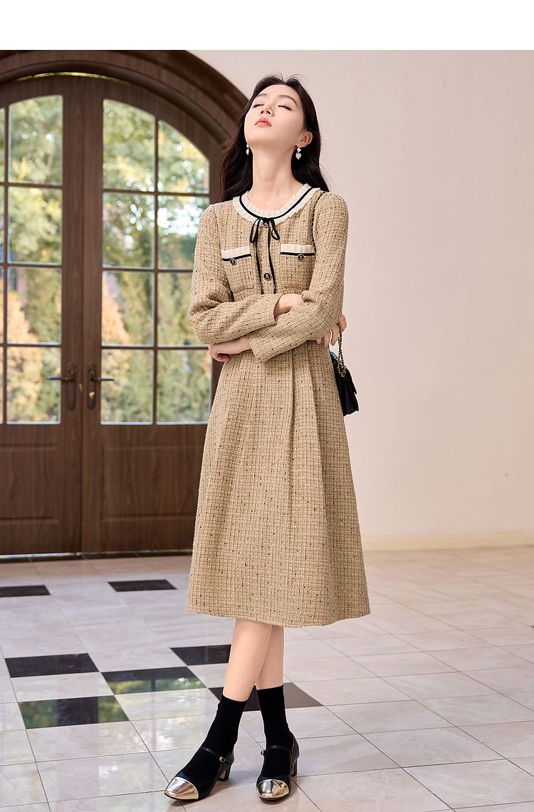 【专属特价】熙世界法式千金小香风连衣裙女秋冬2025新款高级感气质粗花呢裙子