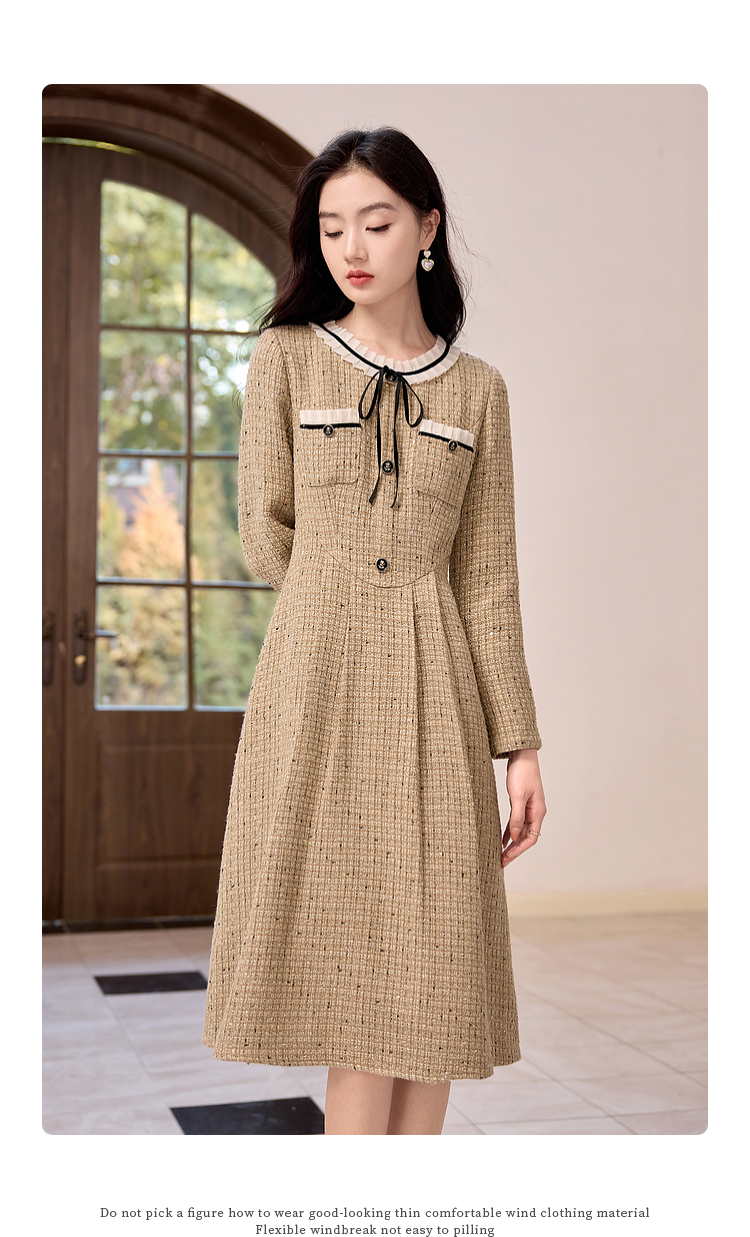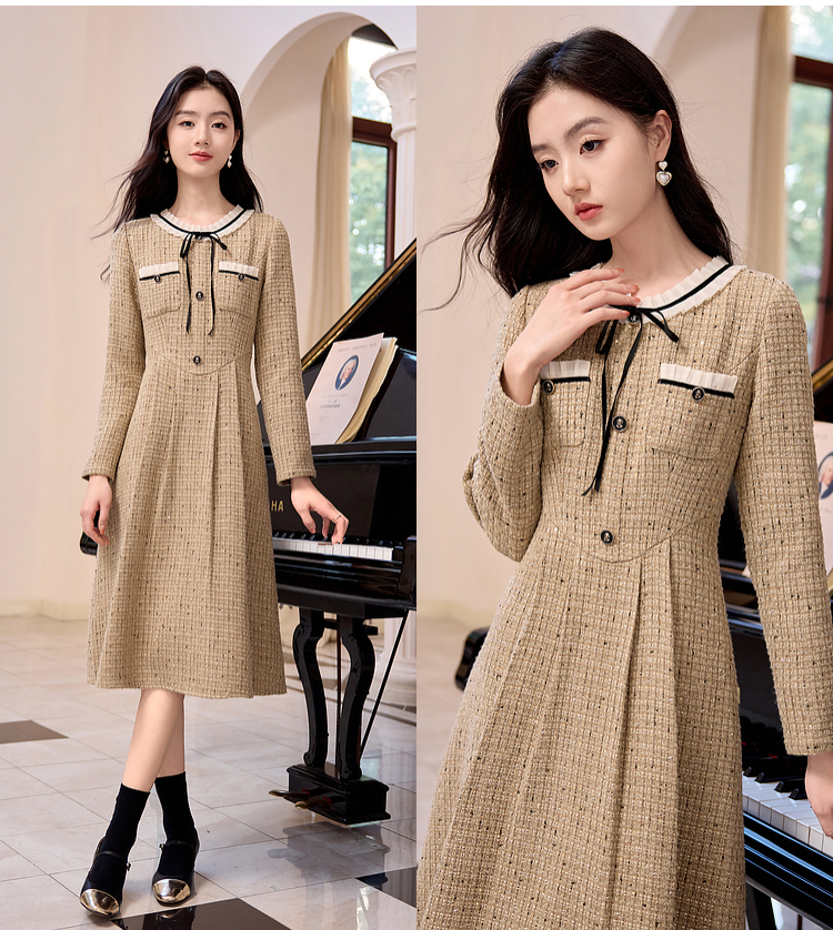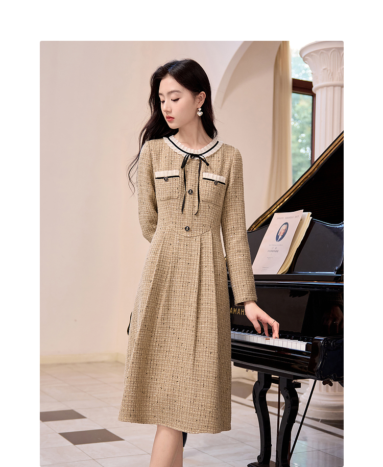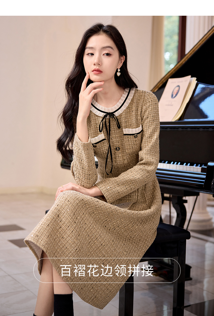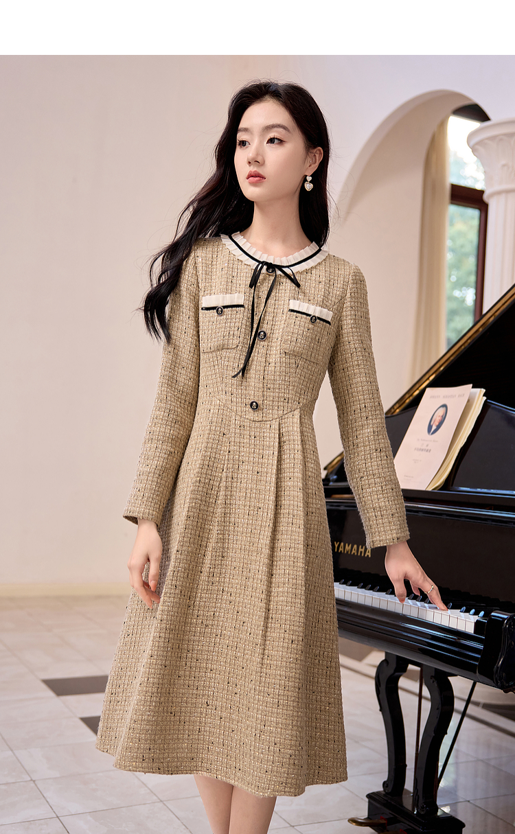 【专属特价】熙世界法式千金小香风连衣裙女秋冬2025新款高级感气质粗花呢裙子
