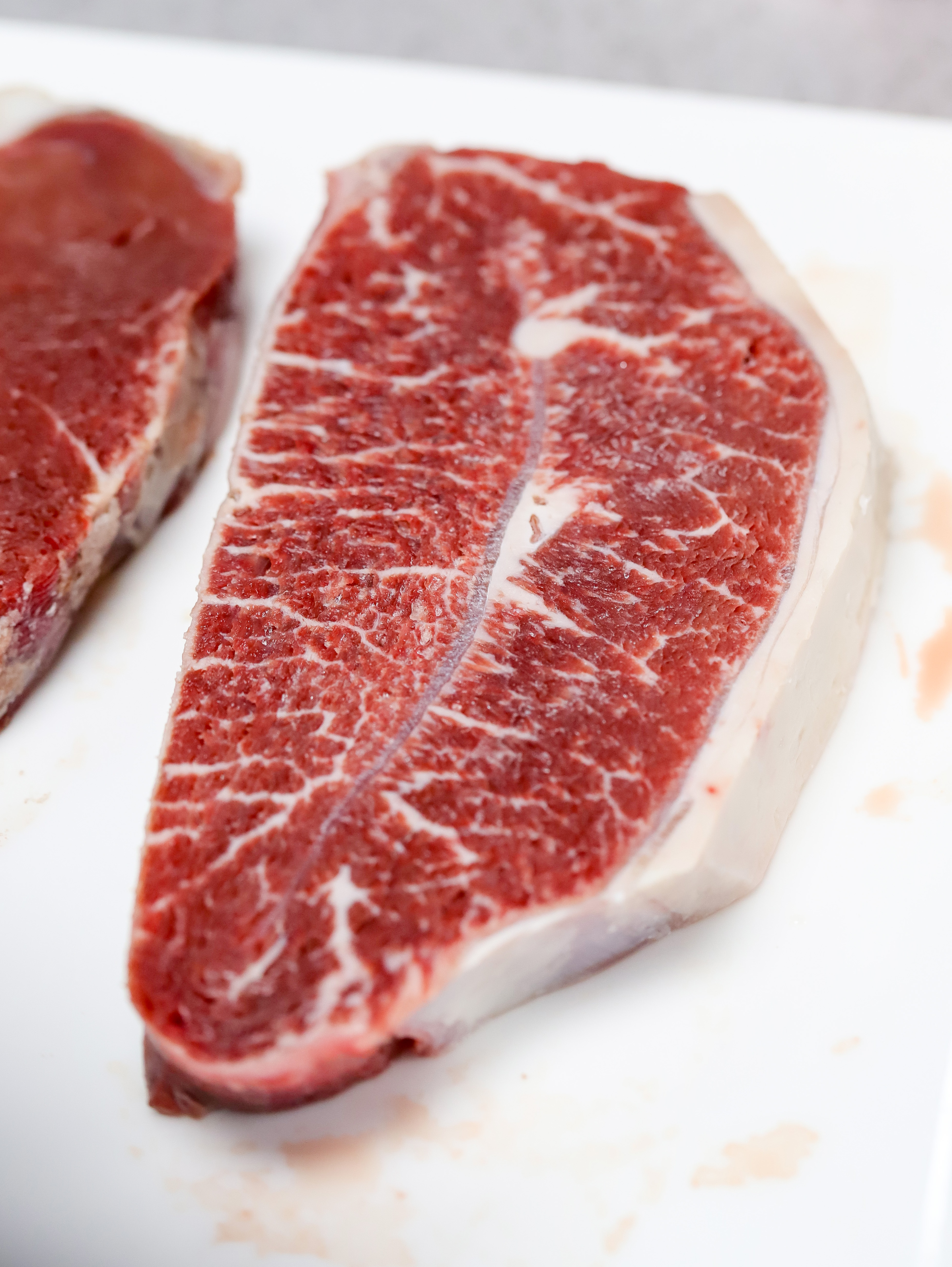1.将完全解冻的牛排用厨房用纸吸干表面血水