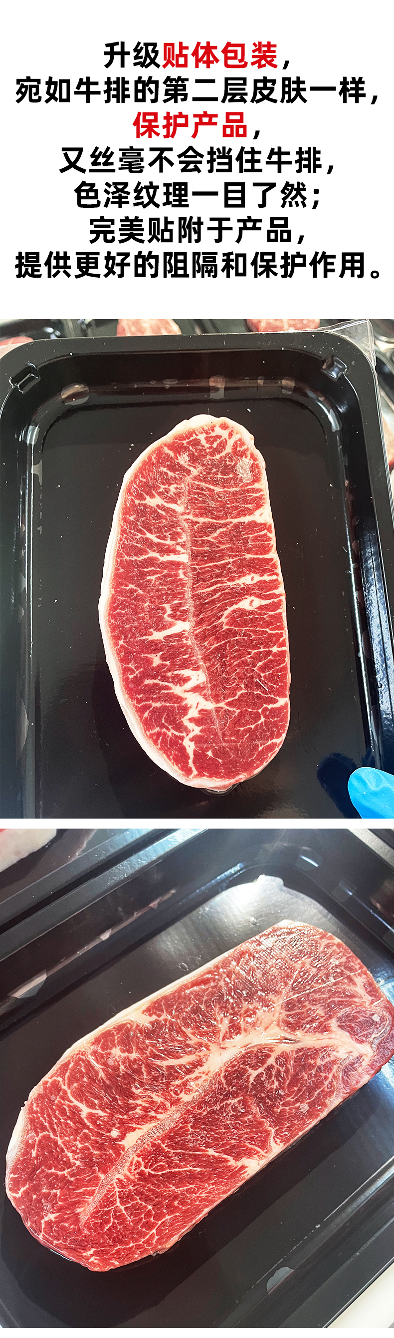 我们的原切牛排也从品质,包装进行了一大步改造