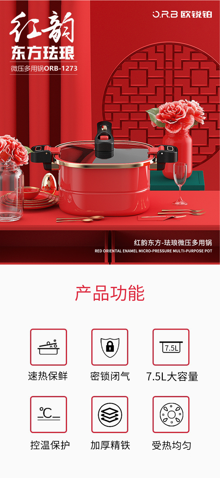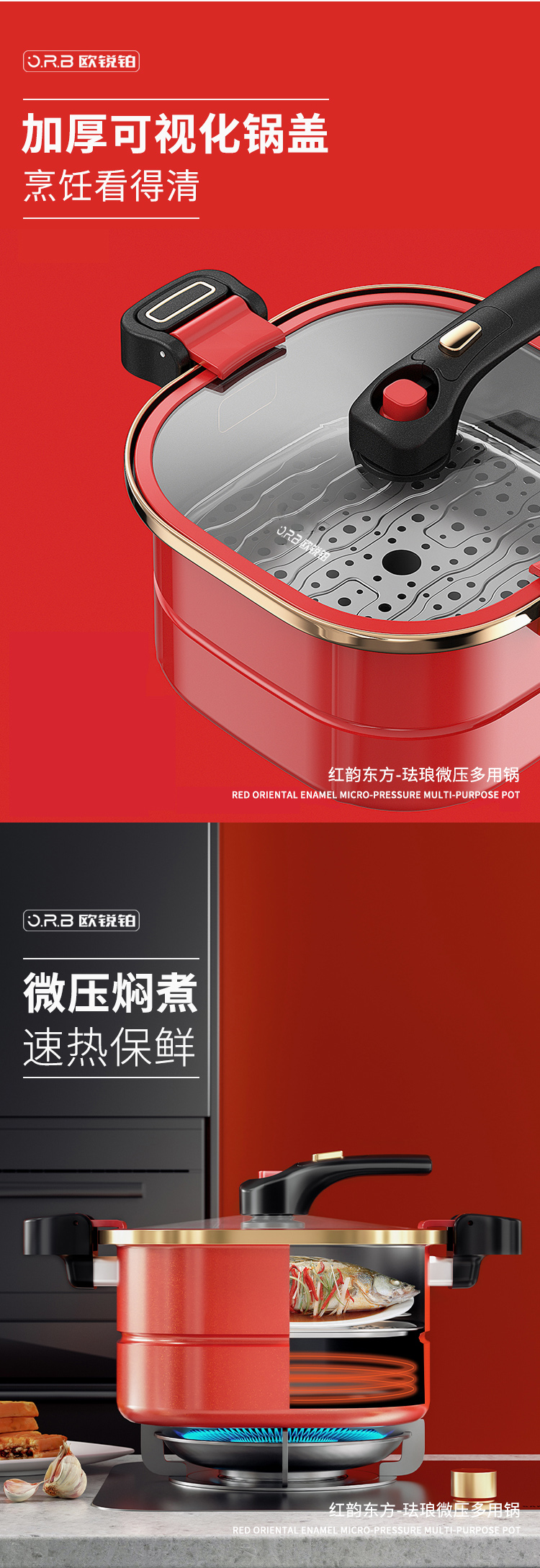 欧锐铂红韵东方-珐琅微压锅ORB-1273