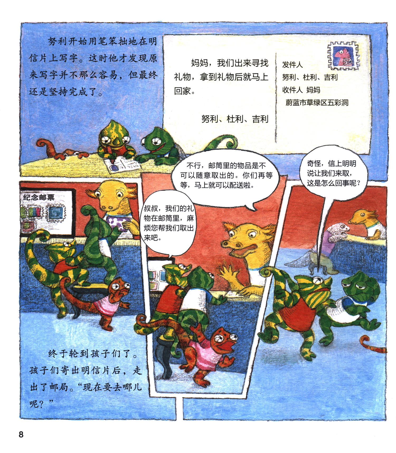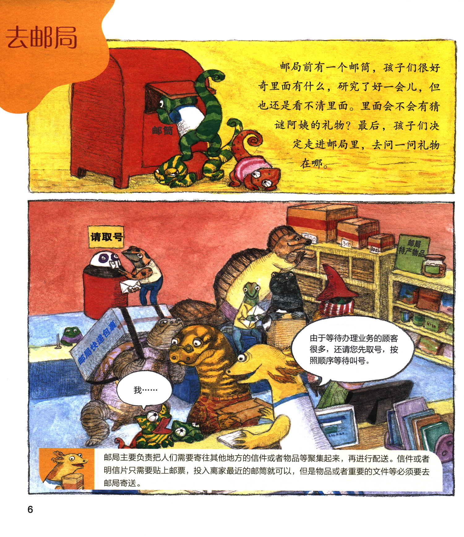 如何邮寄包裹,如何乘坐地铁,如何办理登机……对于初次到公共场所的孩子来说大多很陌生,那么就请你跟随变色龙三兄妹一起去邮局、银行、地铁站、图书馆、机场等地,了解并学一学在公共场所我们应该怎么做吧!