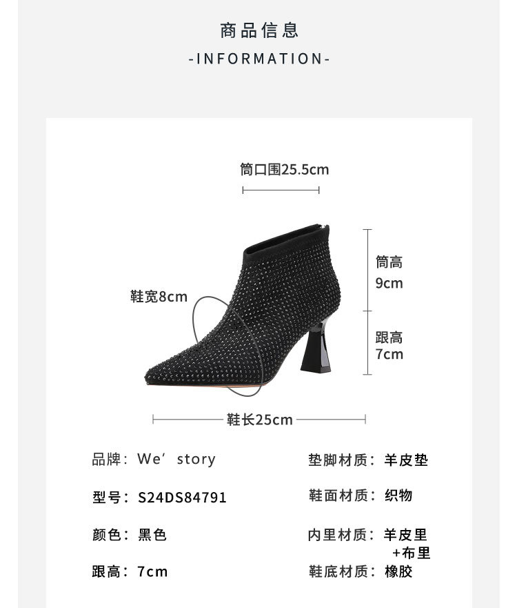 westory2024年秋冬新款优雅风细高跟百搭短靴切尔西女S24DS84791