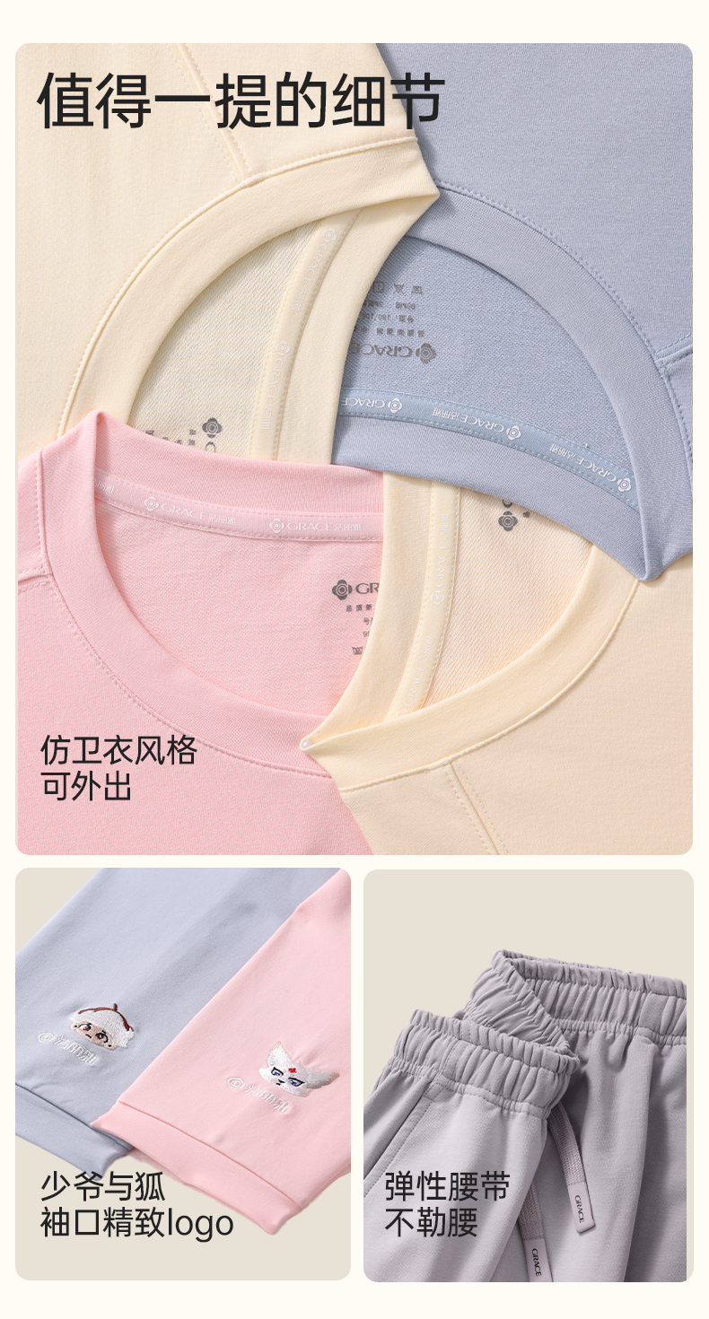 【棉疆溯源】洁丽雅少年与狐家居服薄款圆领宽松居家长袖休闲简约风