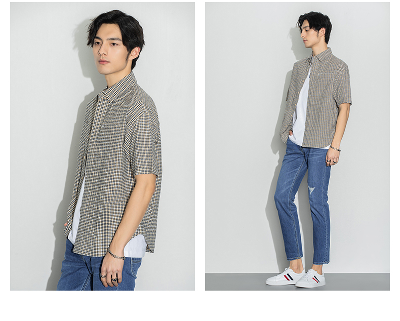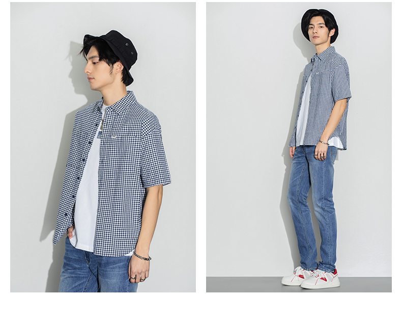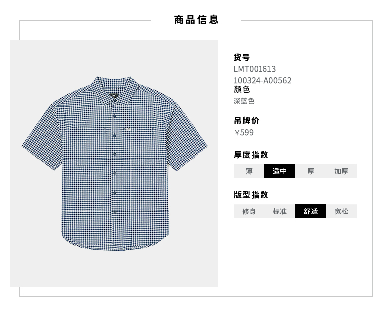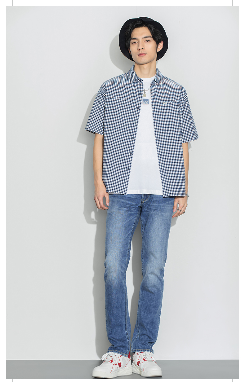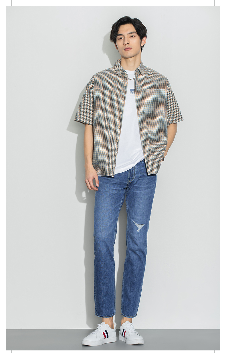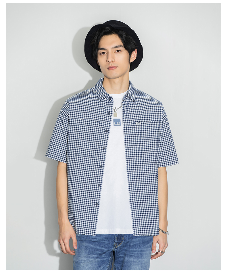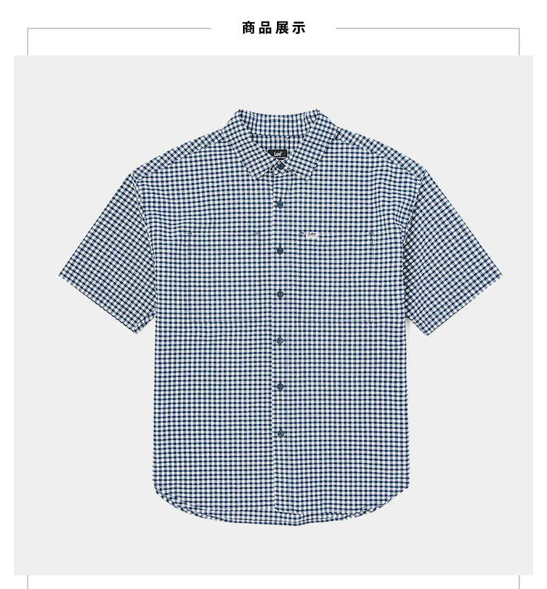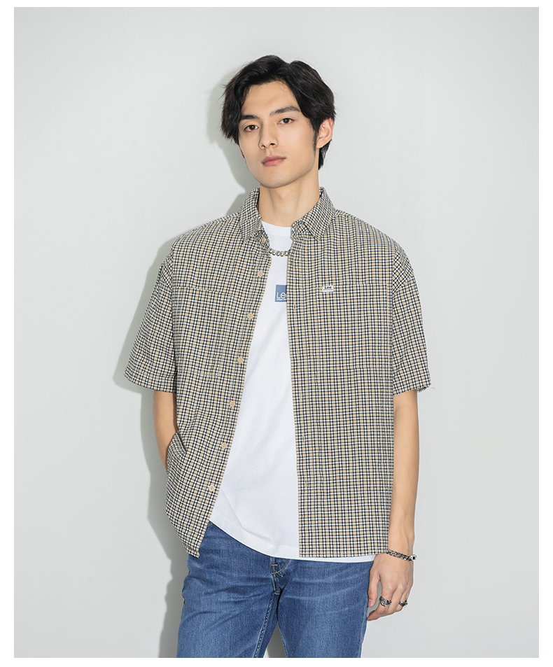 Lee商场同款22春夏新品舒适版格纹多色男短袖衬衫潮LMT001613100