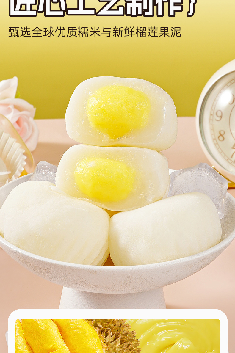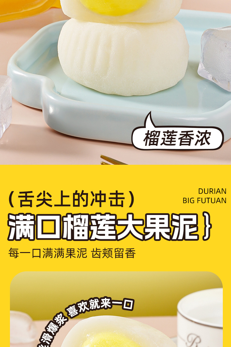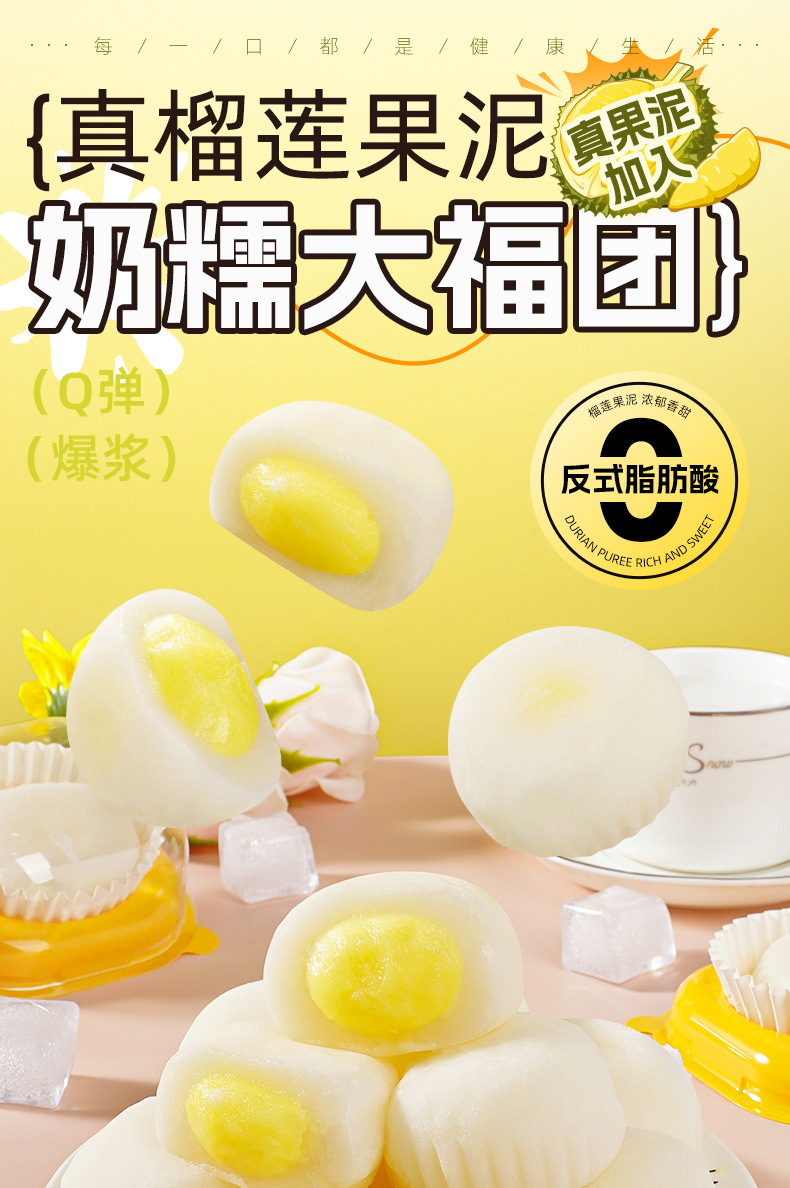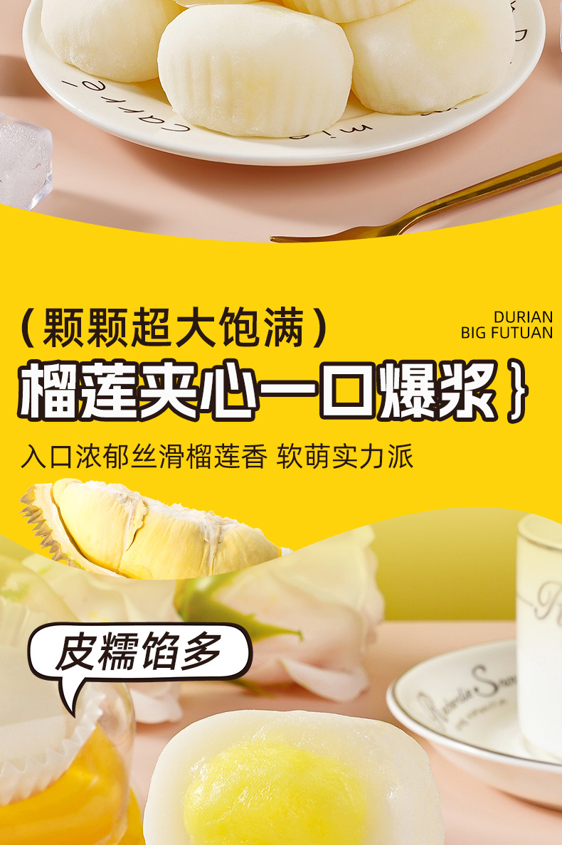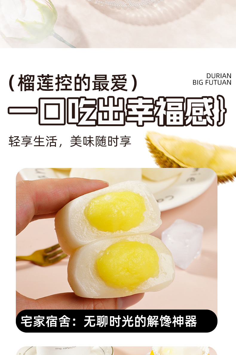 【一口爆浆❗️奶糯榴莲大福团】甄选新鲜榴莲果泥加入,入口浓郁丝滑榴莲香,生巧福团雪媚娘糯米,下午茶办公室休闲零食L