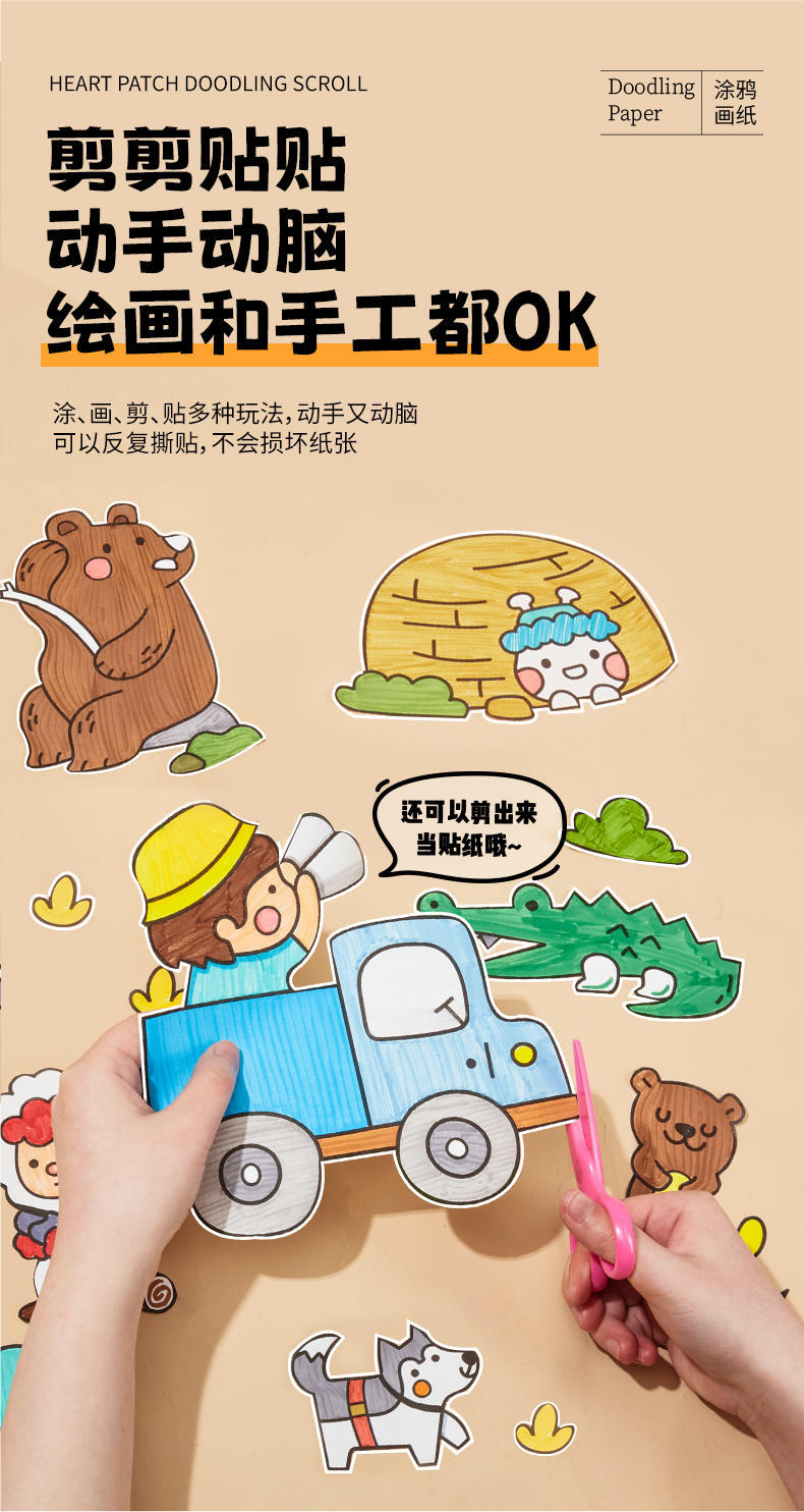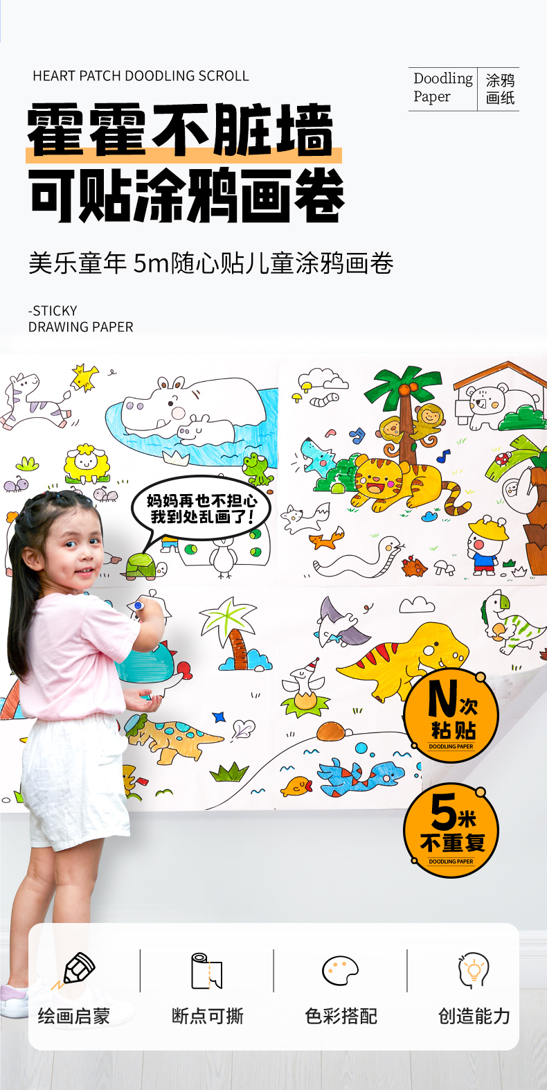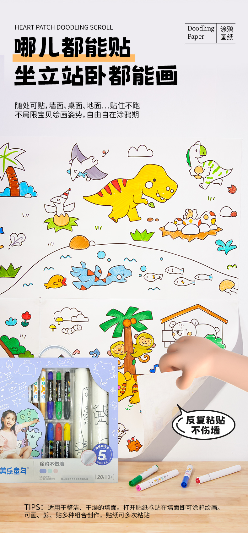 【云优选】美乐童年随心贴画画儿童涂色绘本涂鸦画卷描红本幼儿园图画本画纸