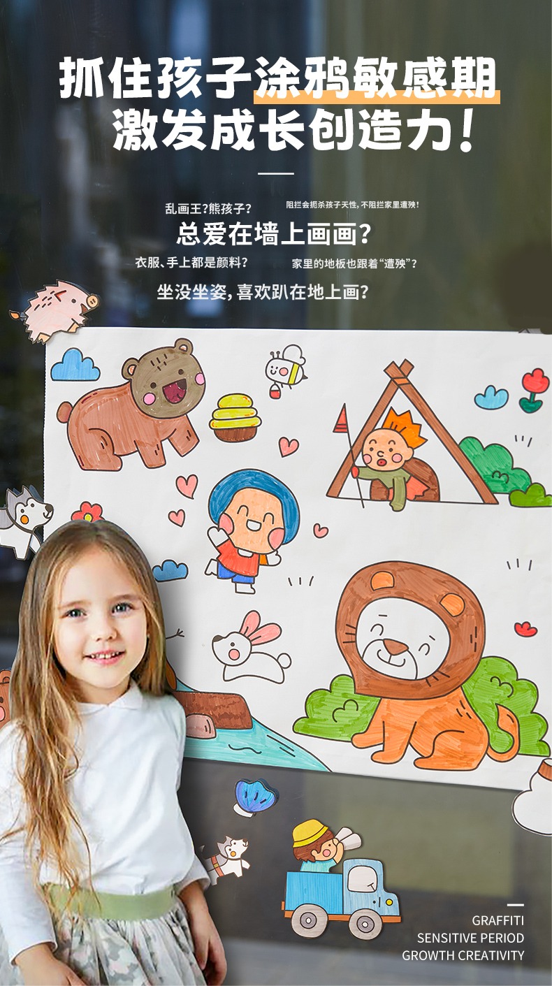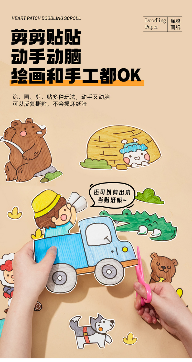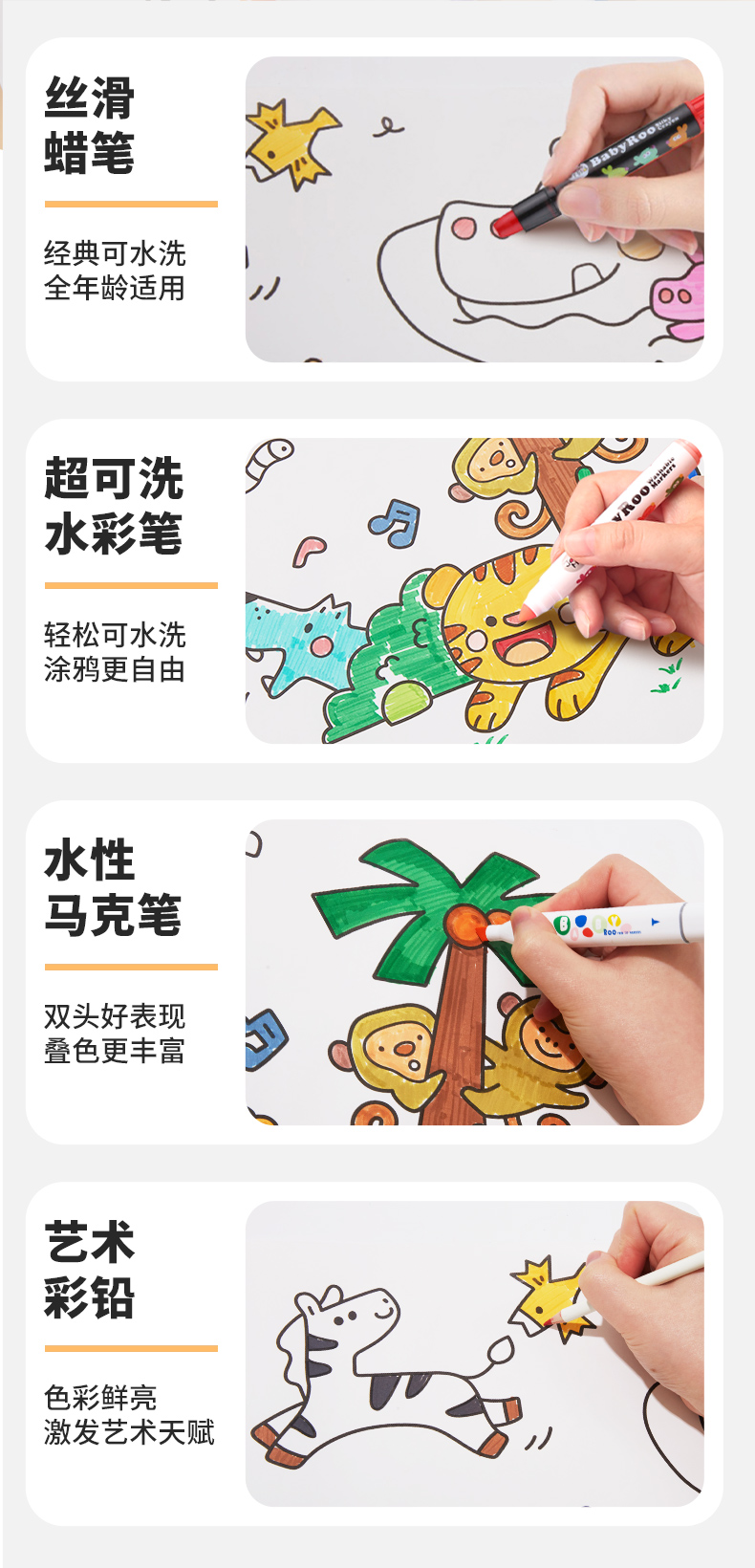 【云优选】美乐童年随心贴画画儿童涂色绘本涂鸦画卷描红本幼儿园图画本画纸