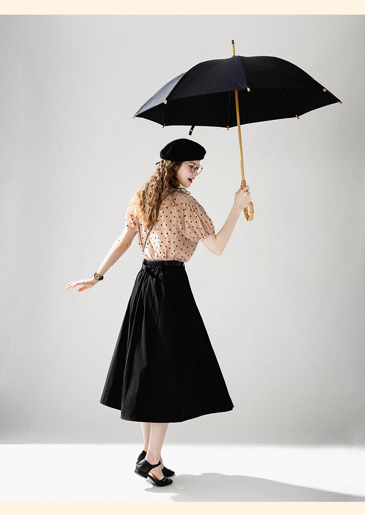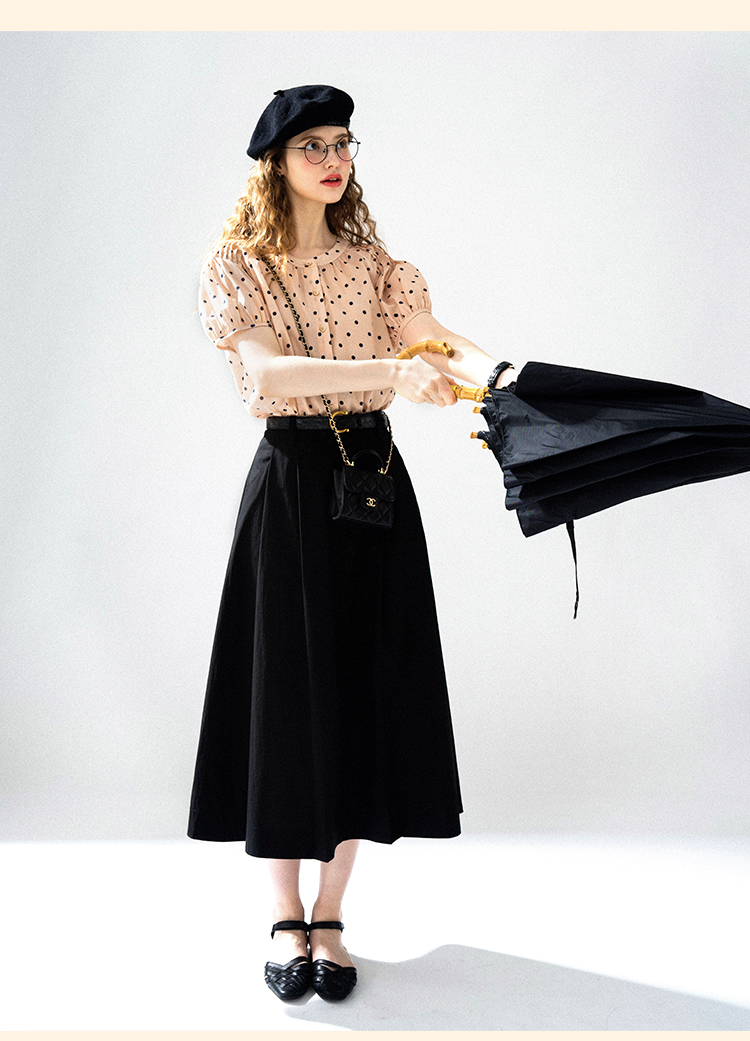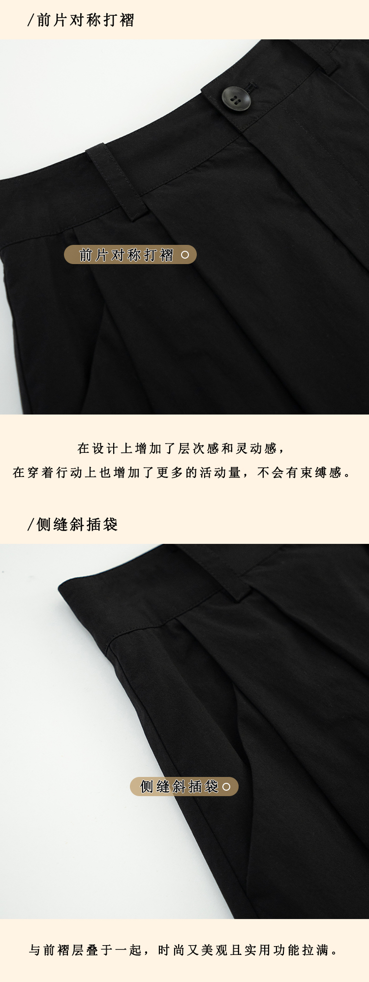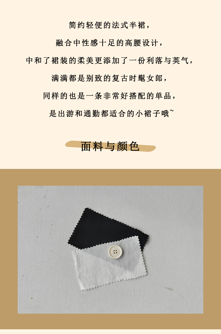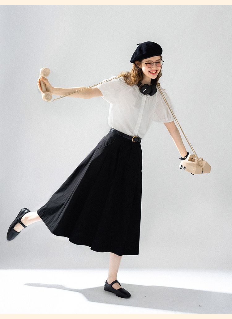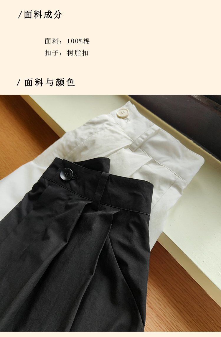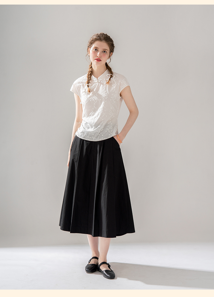 浮生八记/24A054/复古棉基础打褶通勤A字遮肉半裙