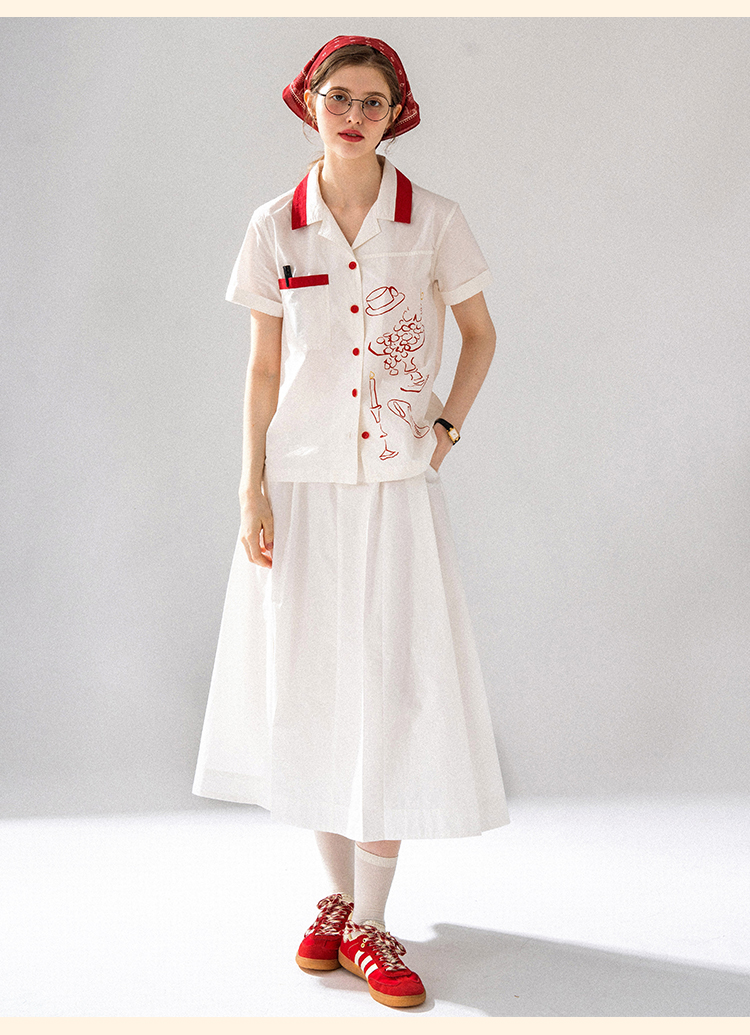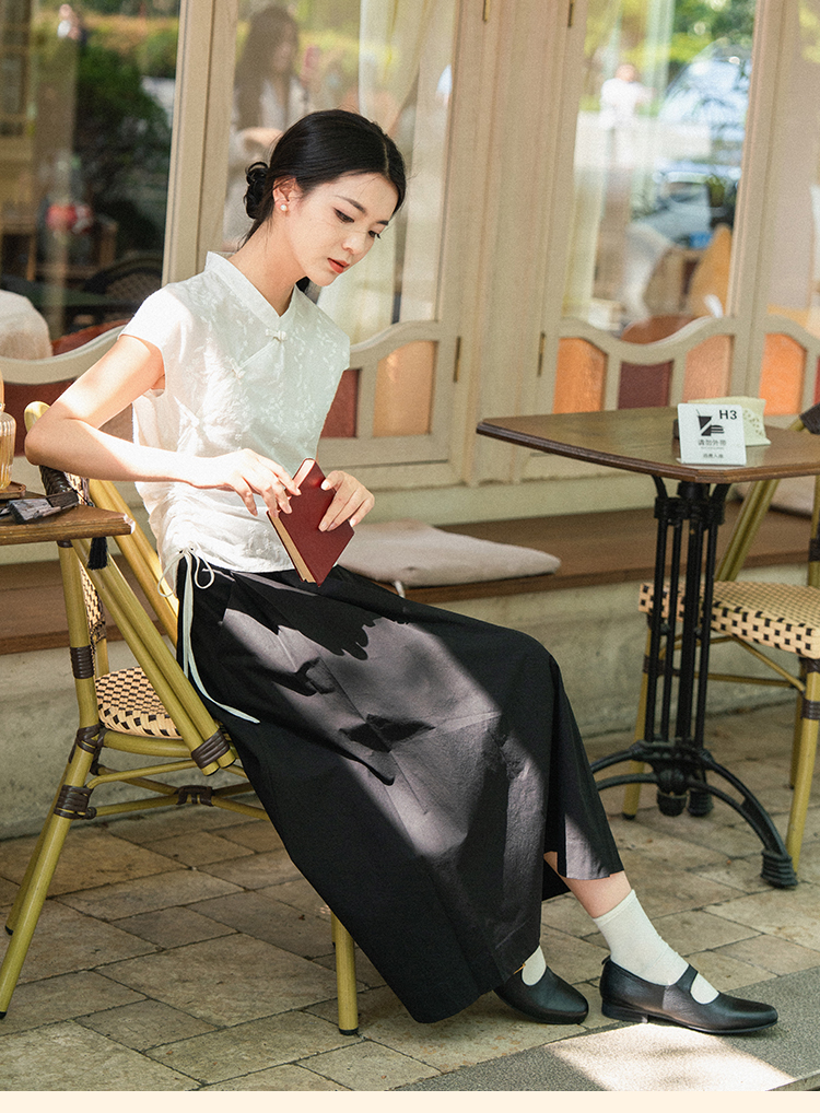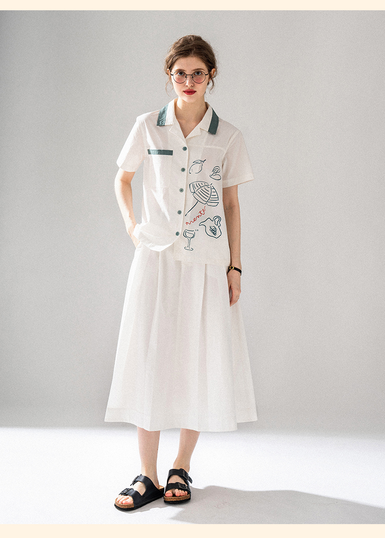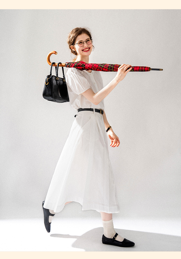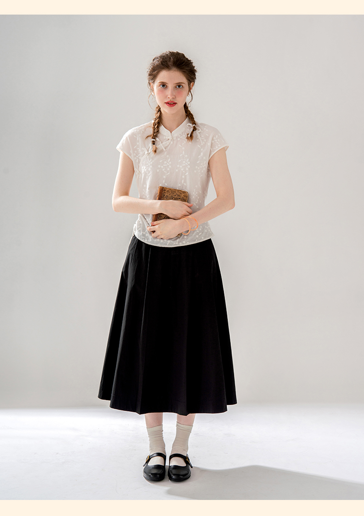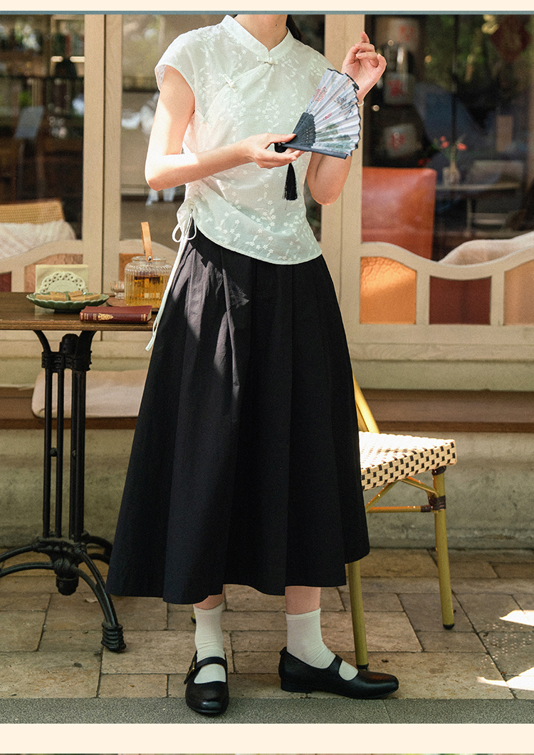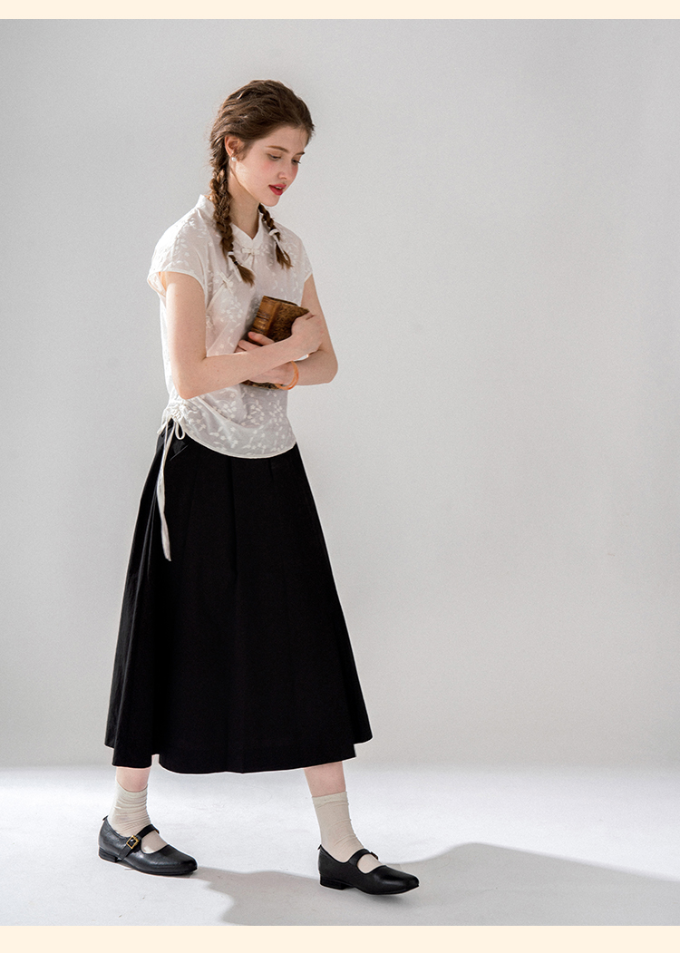 浮生八记/24A054/复古棉基础打褶通勤A字遮肉半裙