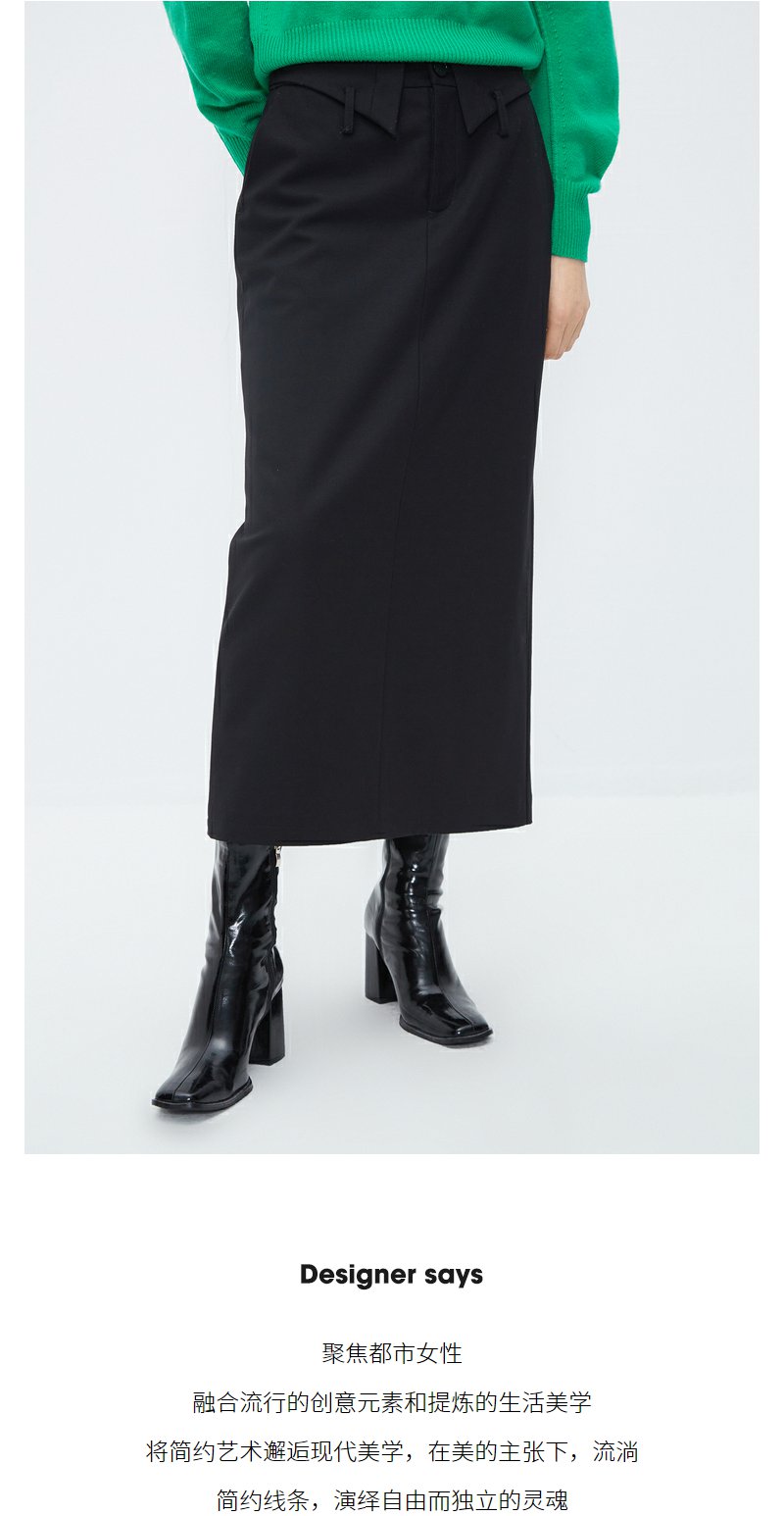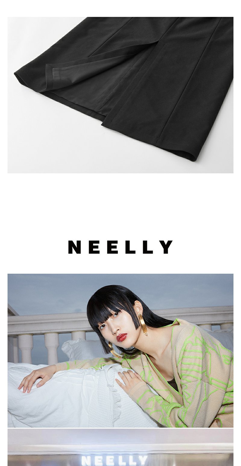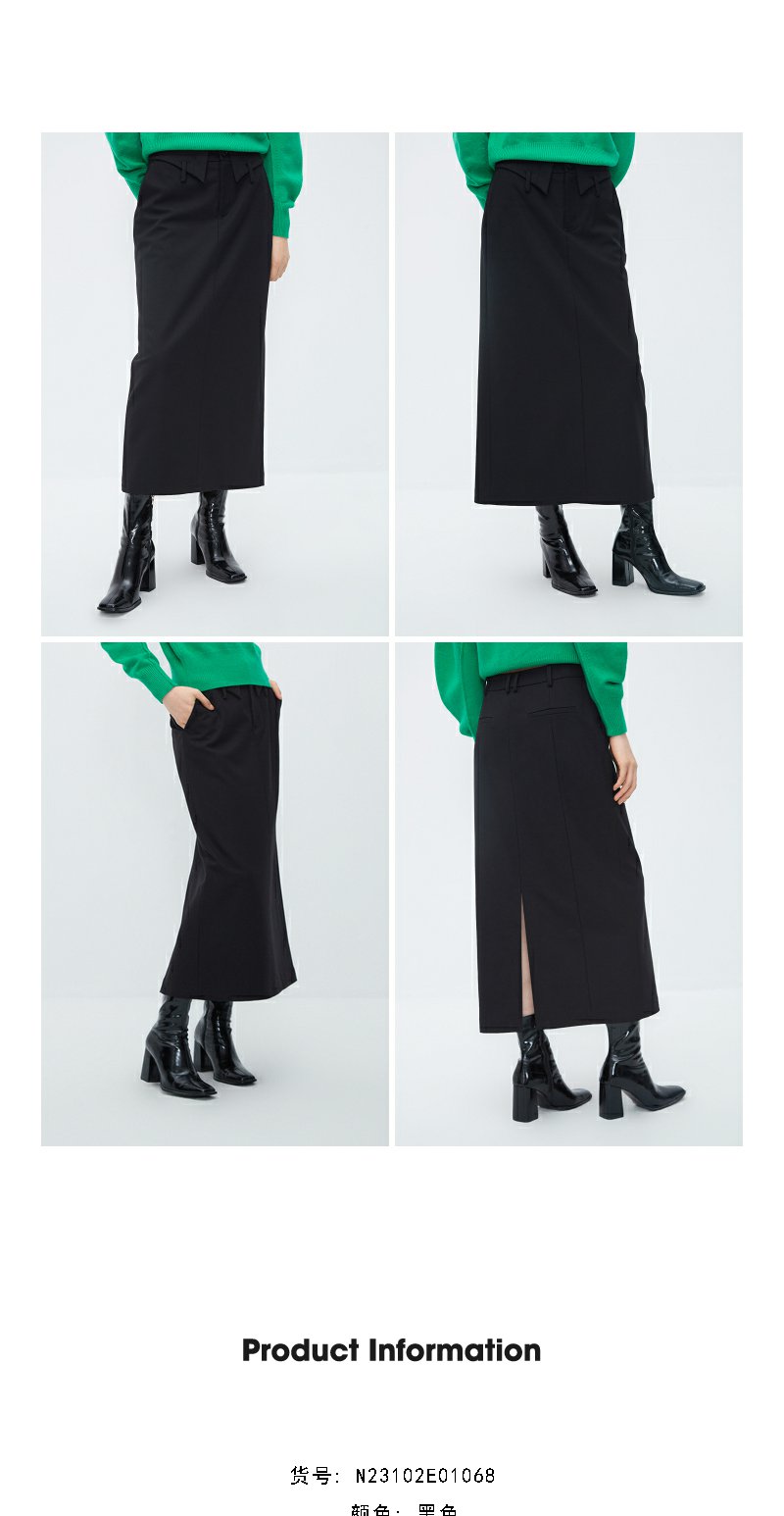 NEELLY纳俪商场同款黑色设计感半身裙女腰部细节通勤 A字裙中长裙N23102E01068