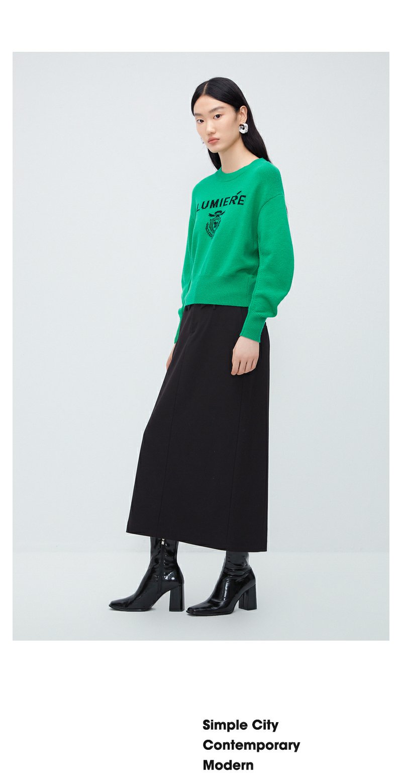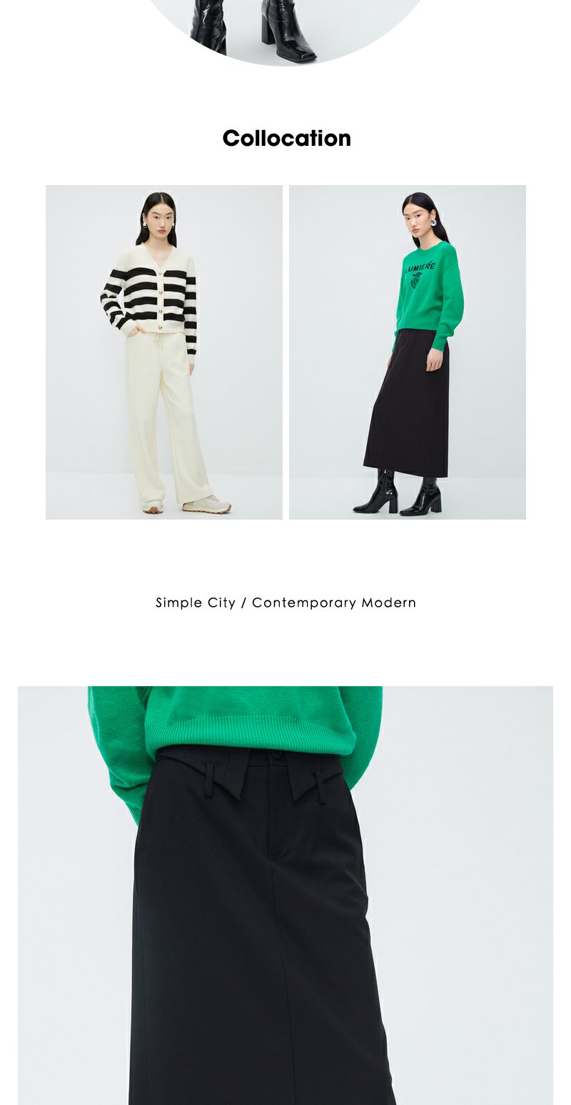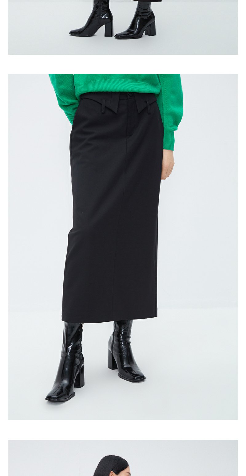 NEELLY纳俪商场同款黑色设计感半身裙女腰部细节通勤 A字裙中长裙N23102E01068