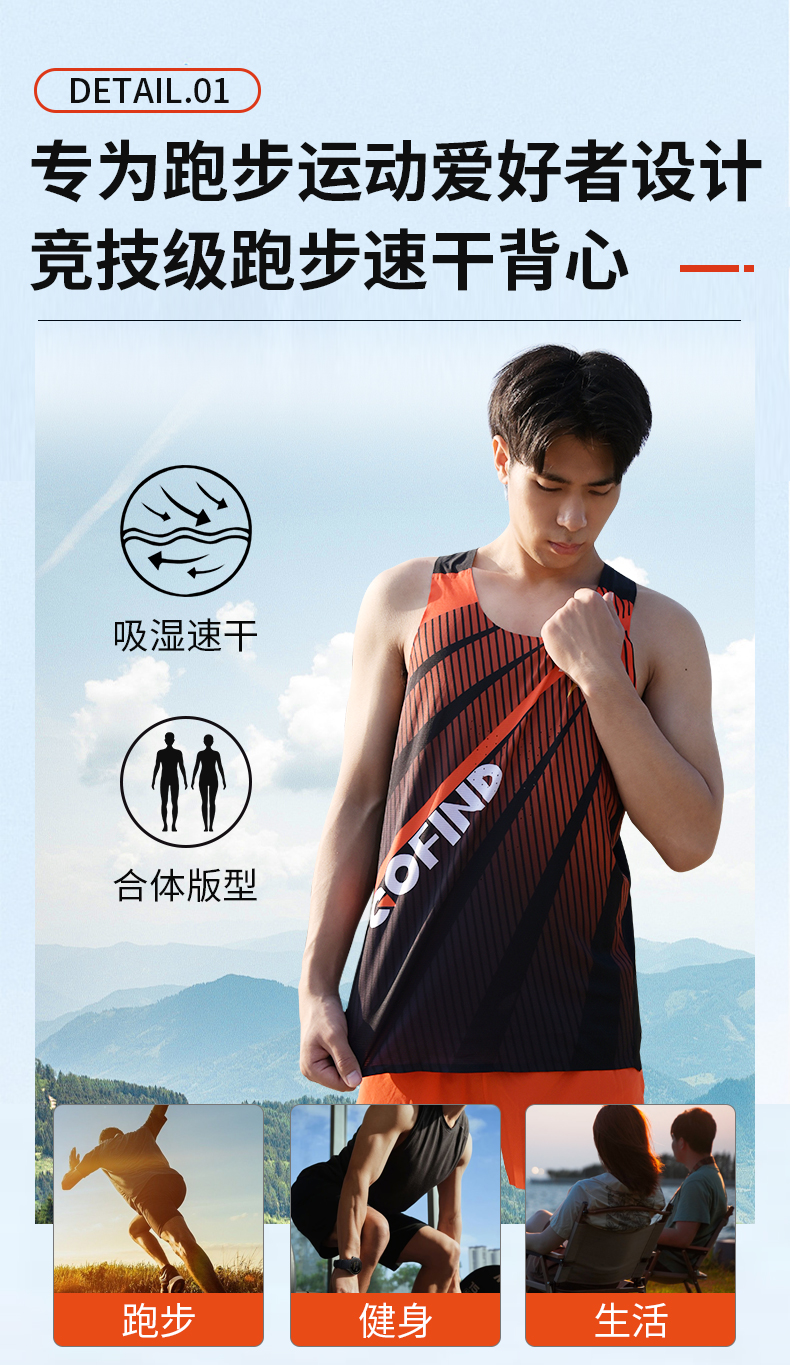 【价值219元|可积分兑换】运动玩咖开运穿搭显瘦无袖背心男女款透气马拉松GTD11205/GTD12206