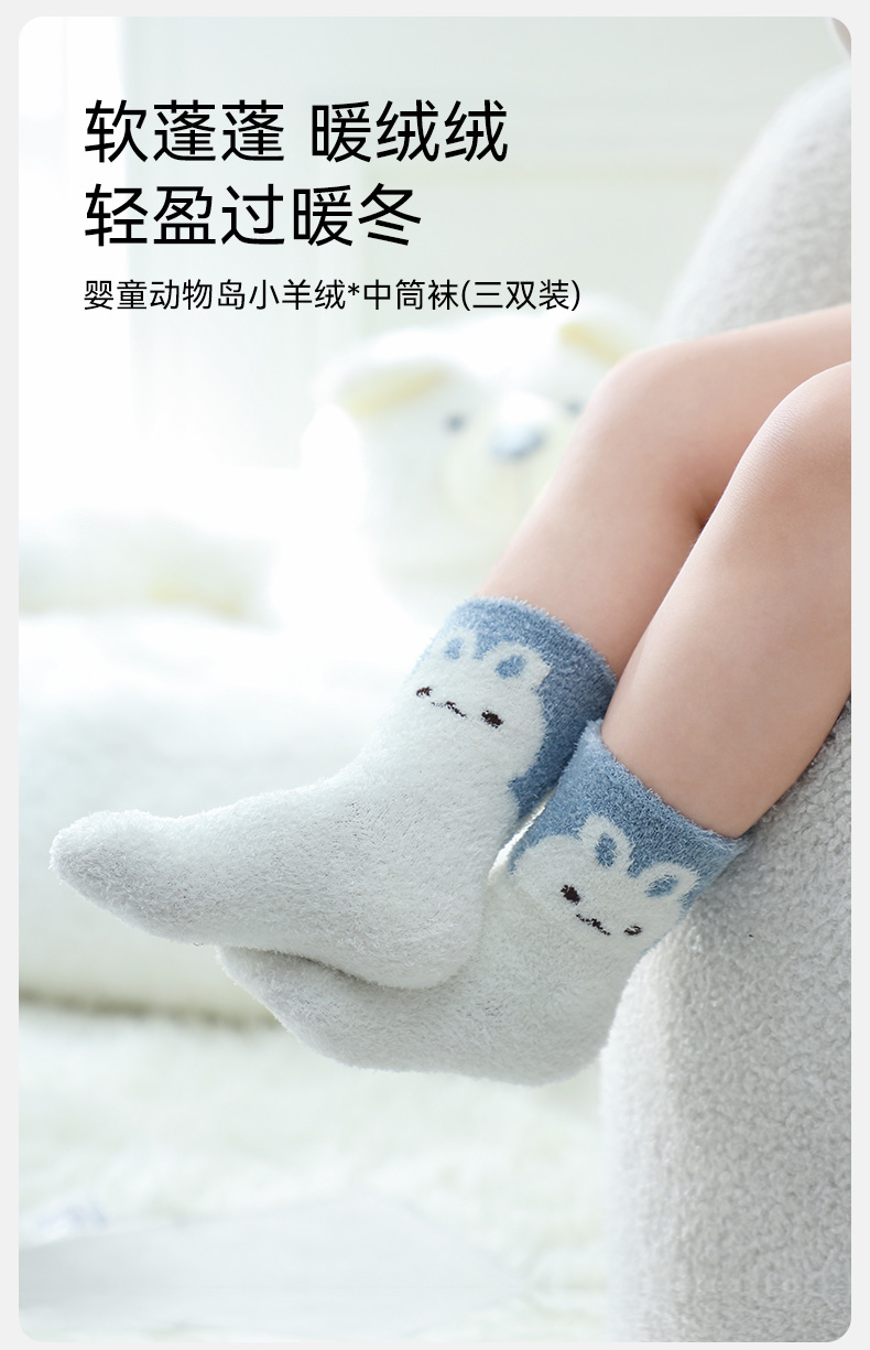 EMXEE嫚熙婴童动物岛羽毛纱中筒袜(三双装)★★