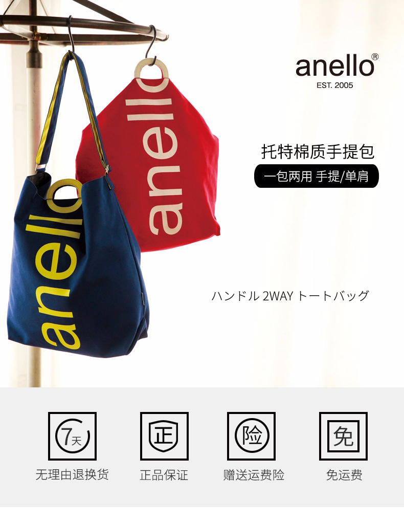【一般贸易】anello日本潮流大logo棉质帆布两用手提包单肩包S0061 蓝布黄字