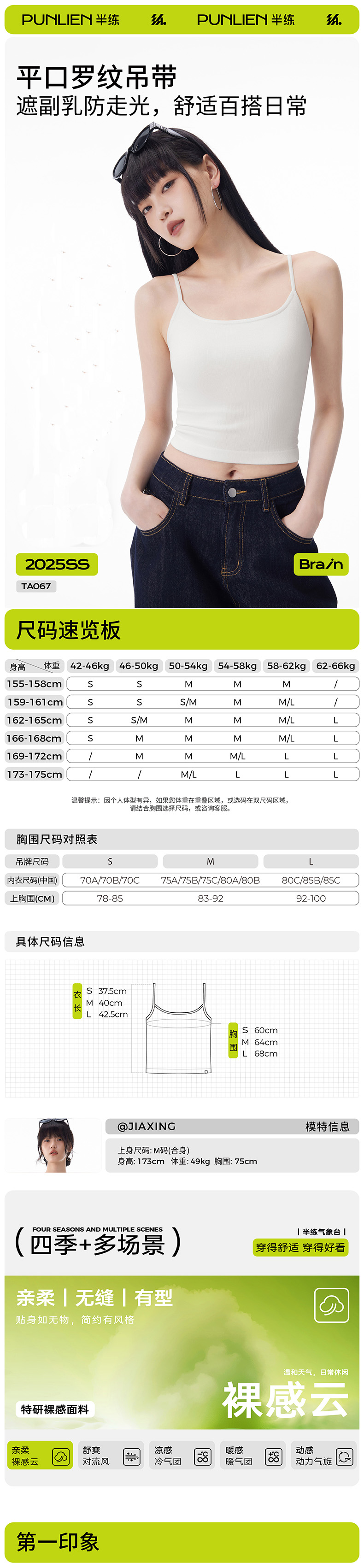 【商品名称】半练罗纹吊带TA067