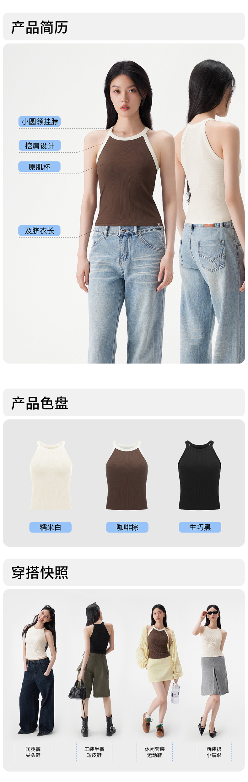 【商品名称】半练U领罗纹吊带TA072