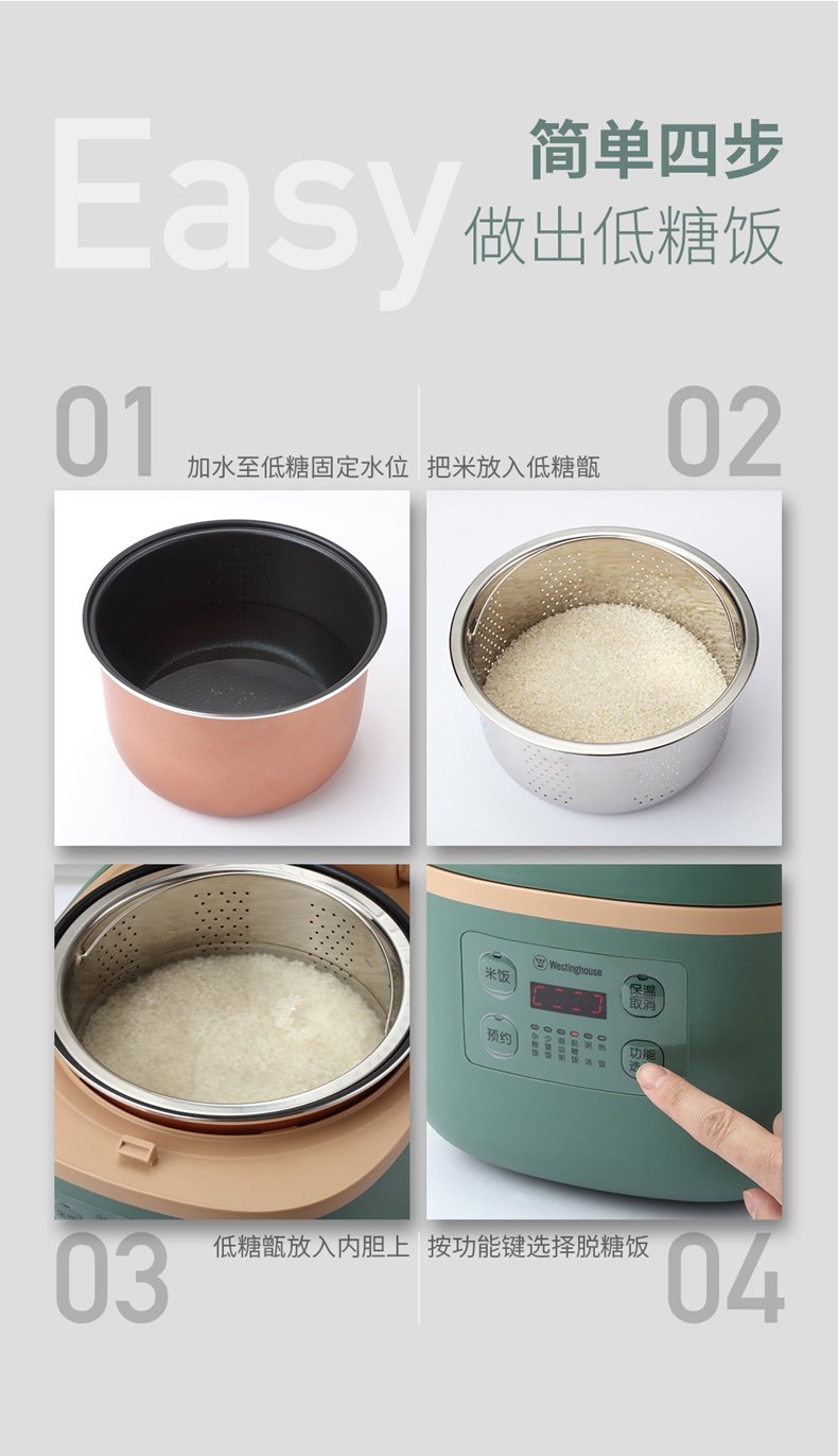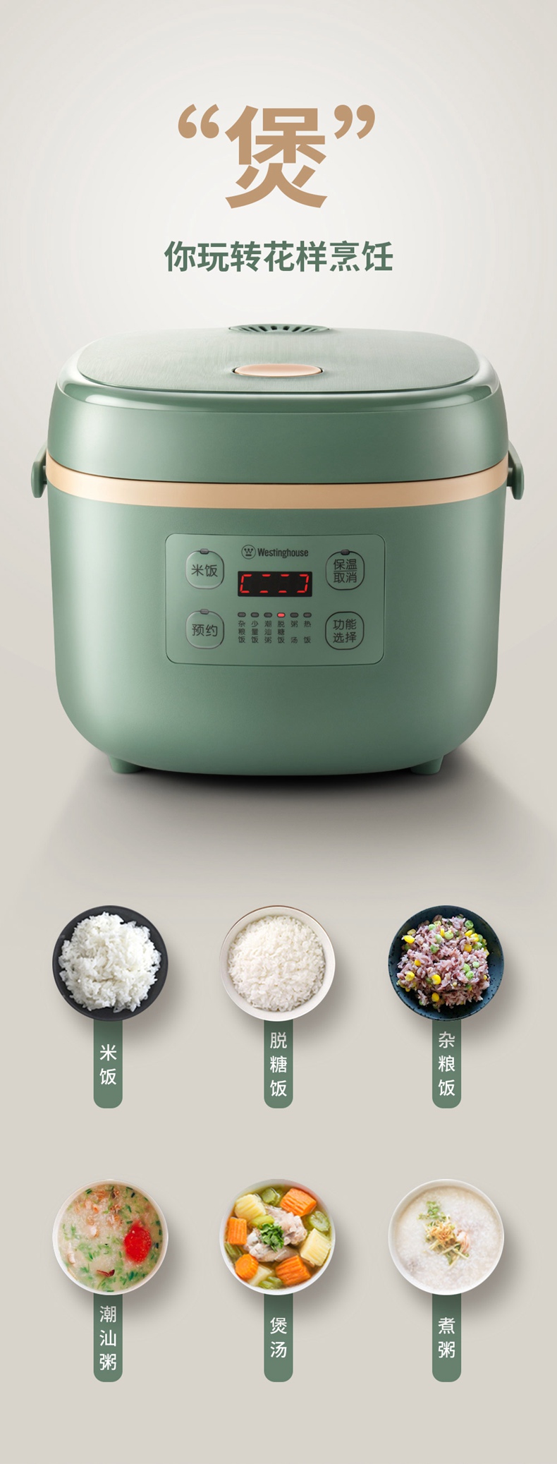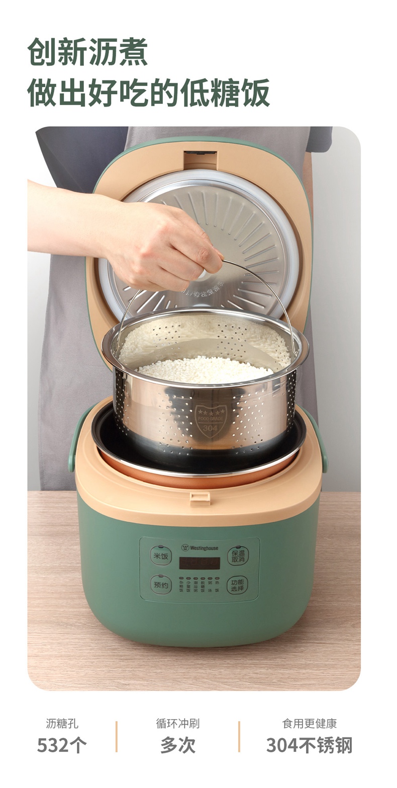 西屋Westinghouse低糖电饭煲功能大容量家用智能电饭锅蒸煮预约保温脱糖胆