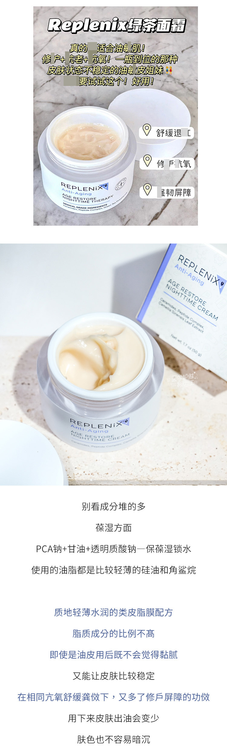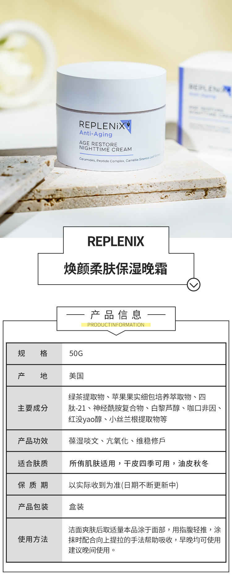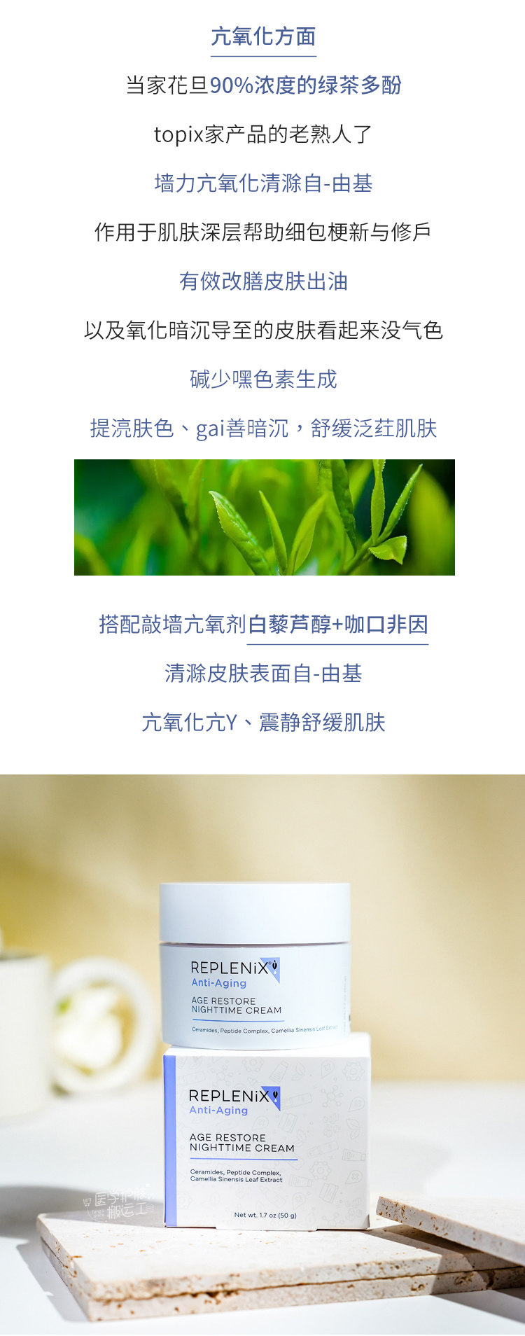 Topix Replenix焕颜柔肤保湿晚霜50g绿茶修复面霜柔嫩熬夜肌50g