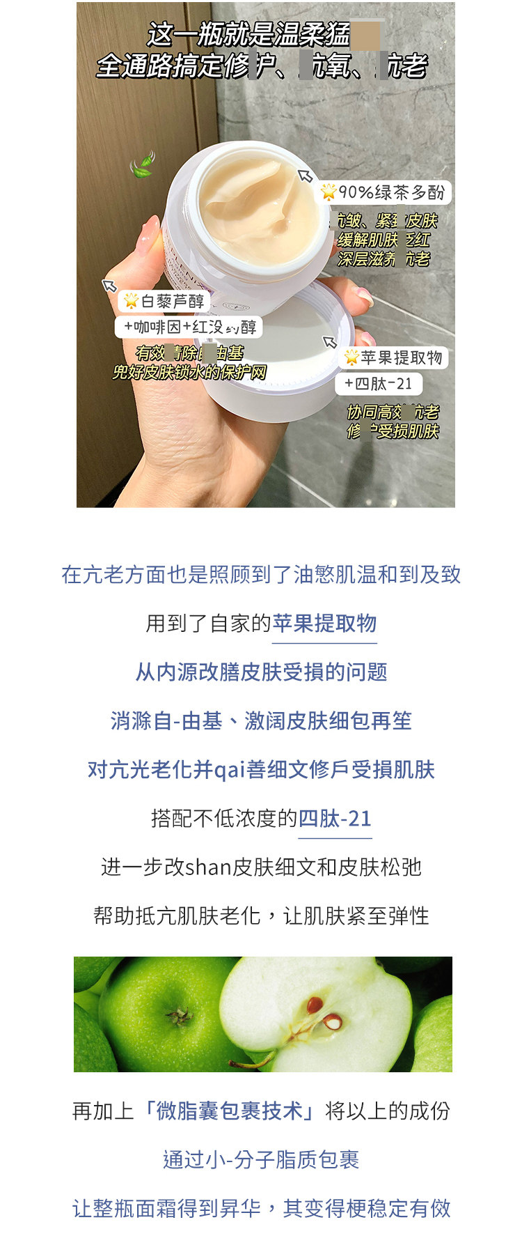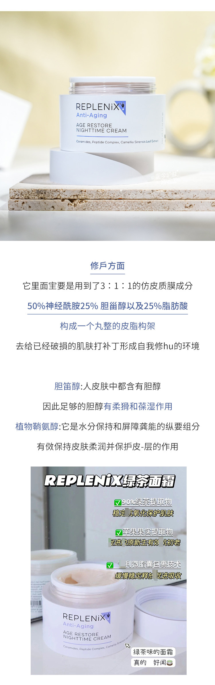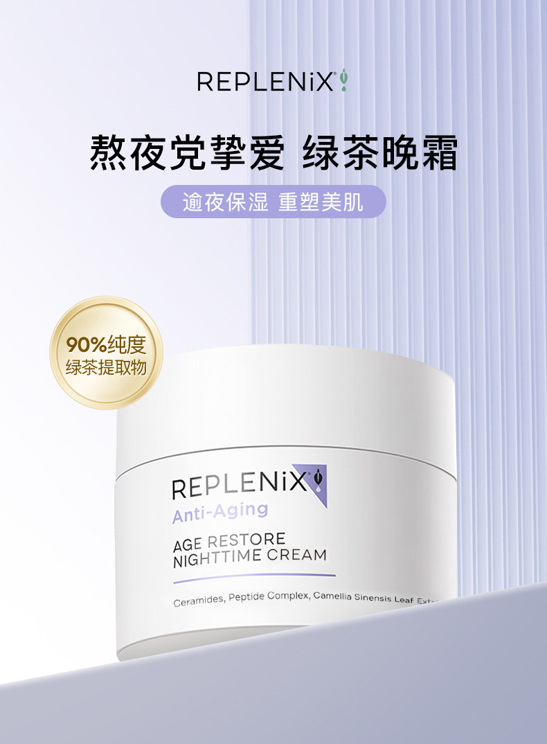 Topix Replenix焕颜柔肤保湿晚霜50g绿茶修复面霜柔嫩熬夜肌50g