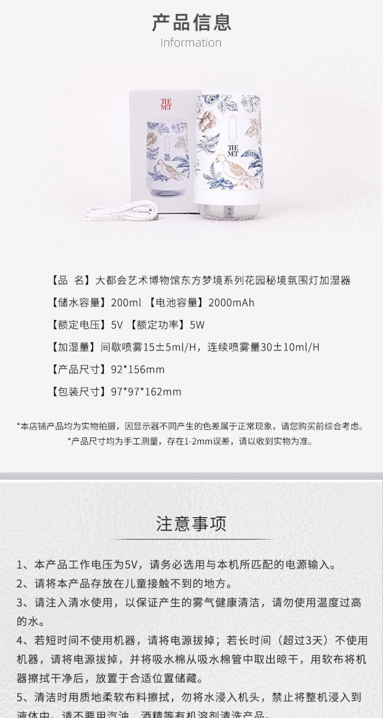 大都会艺术博物馆东方梦境系列 花园秘境氛围灯加湿器摆件礼盒