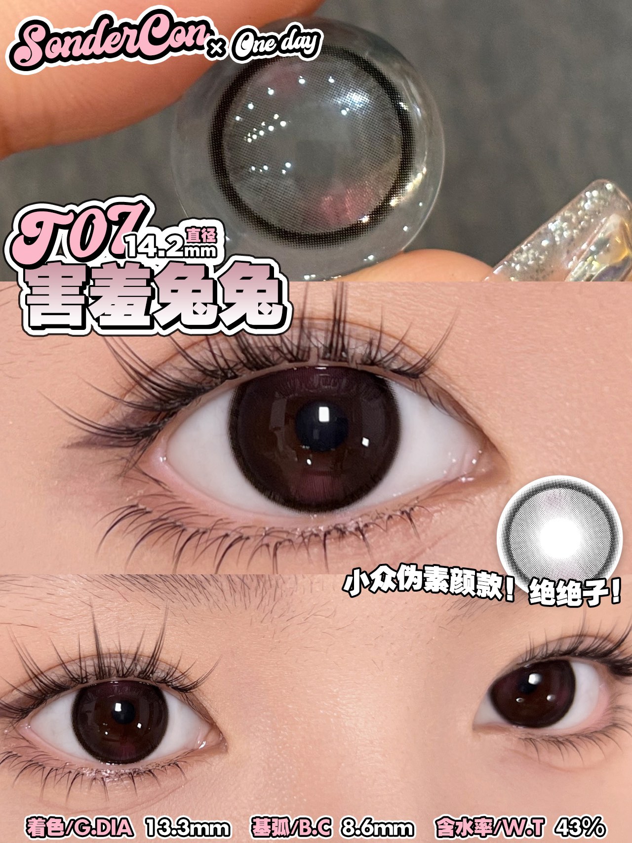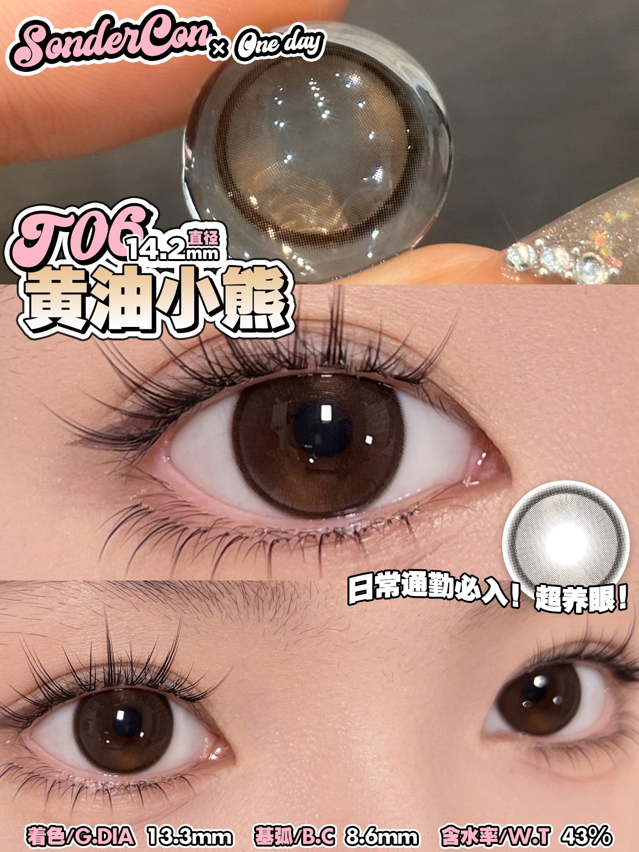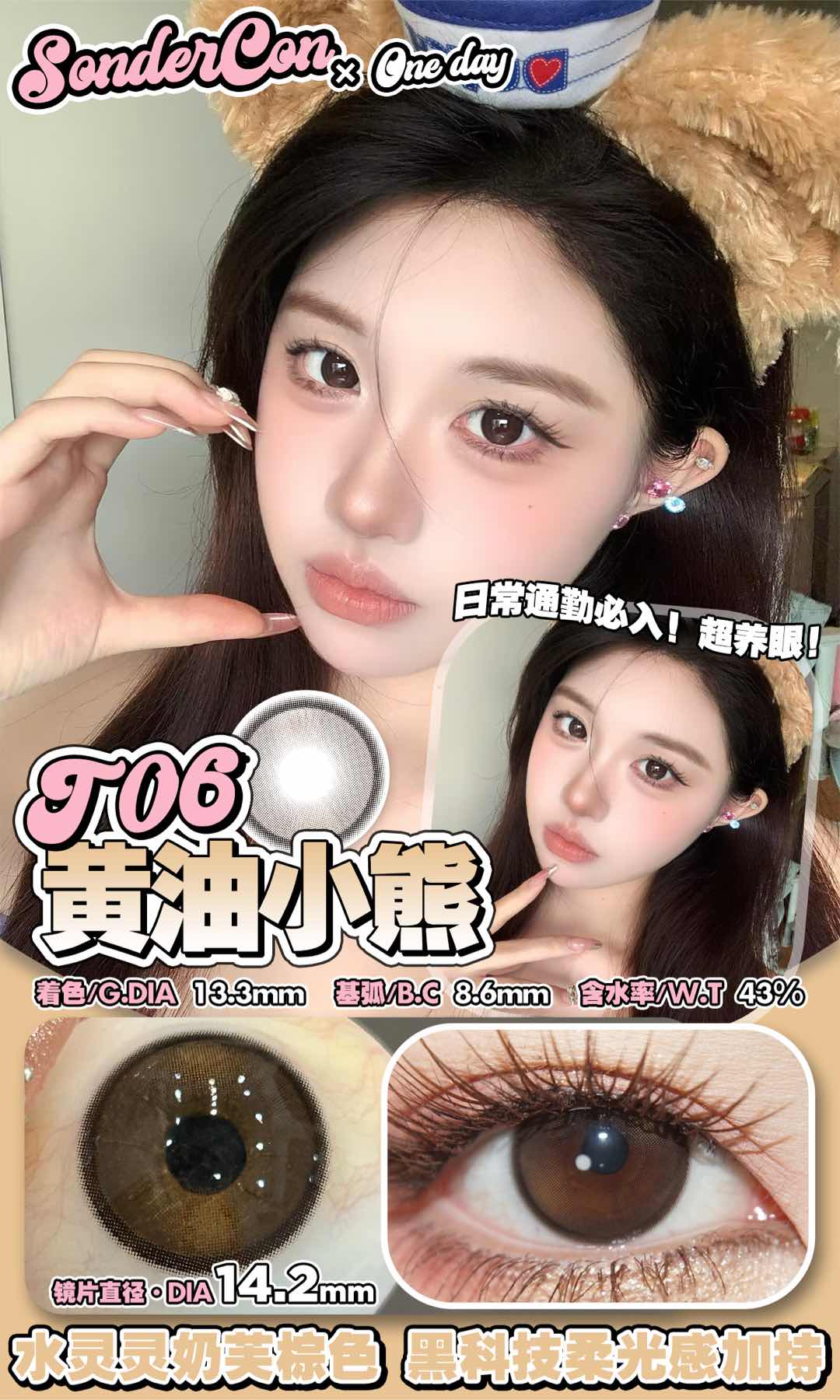 sondercon日抛 黄油小熊 棕/害羞兔兔 粉 14.2mm 日抛无售后!!